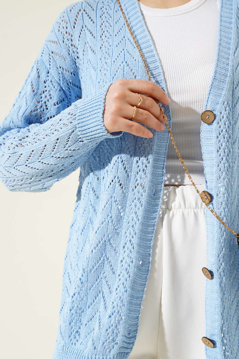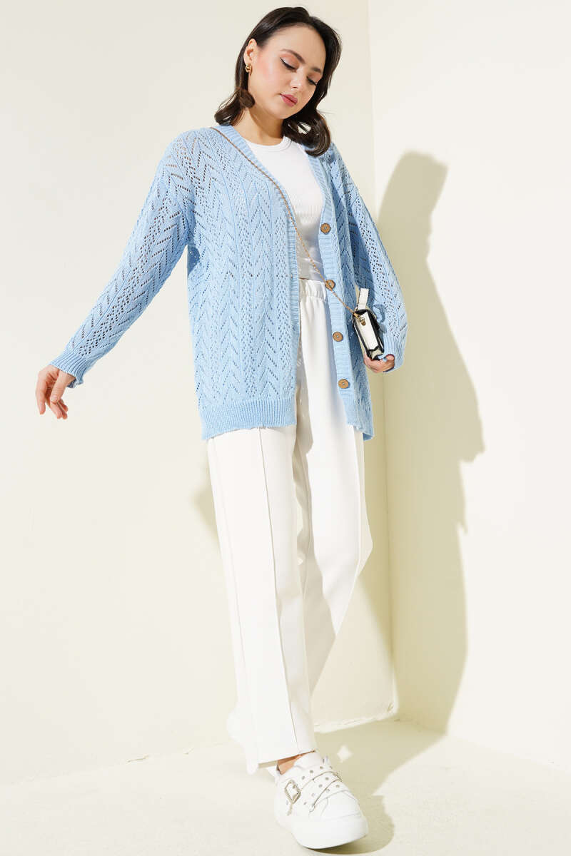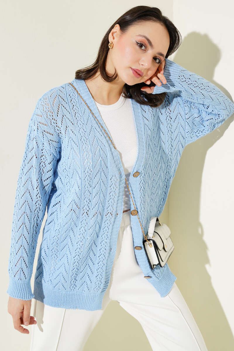 Pirinç Örgü Basic Triko Hırka Nar Çiçeği