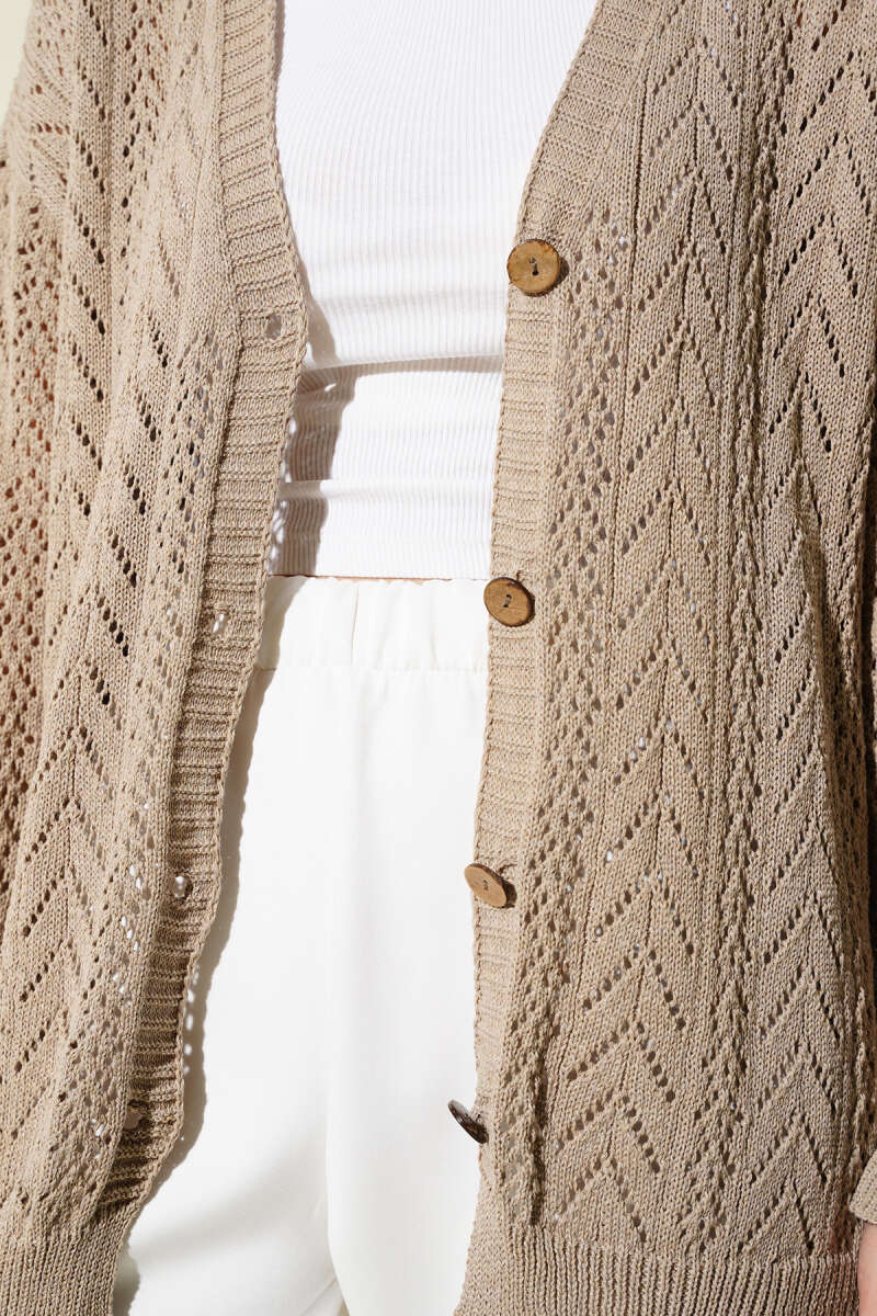 Çiçek Motifli Düğmeli Triko Hırka Siyah