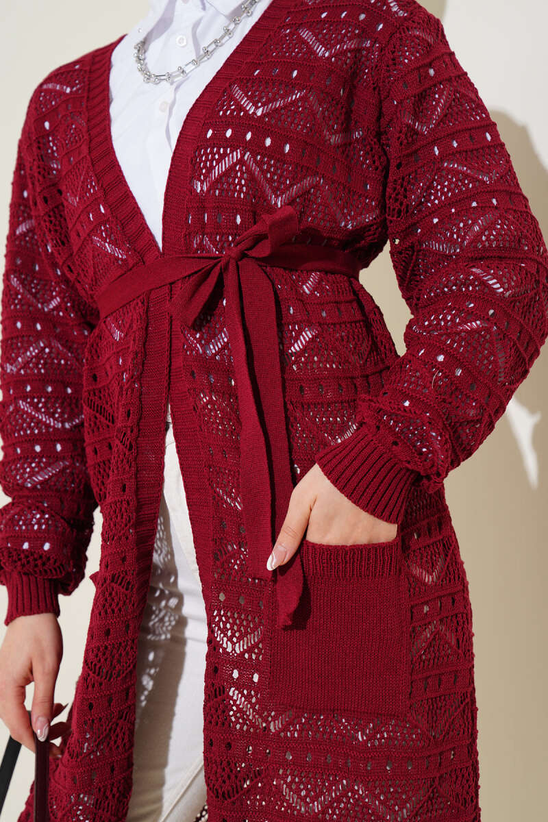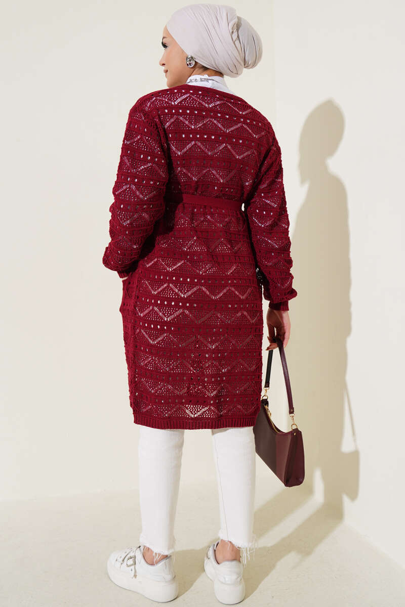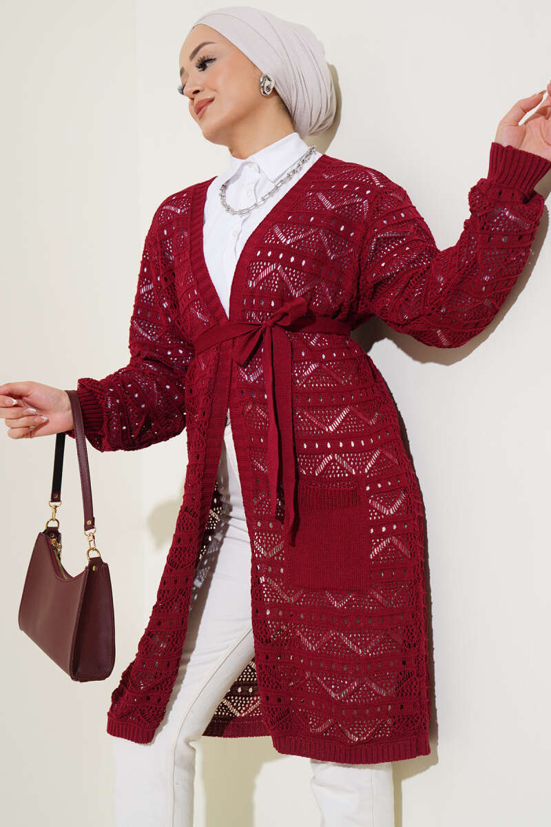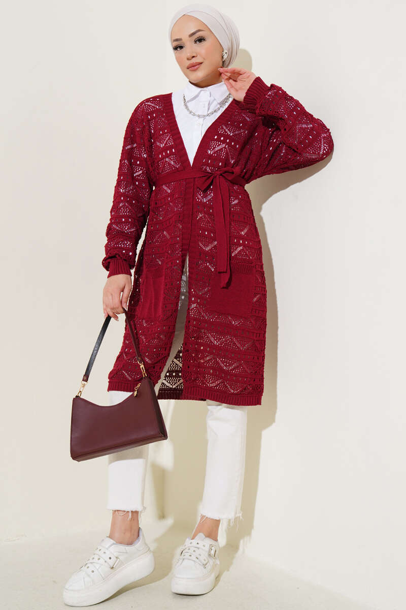 Pirinç Örgü Basic Triko Hırka Nar Çiçeği