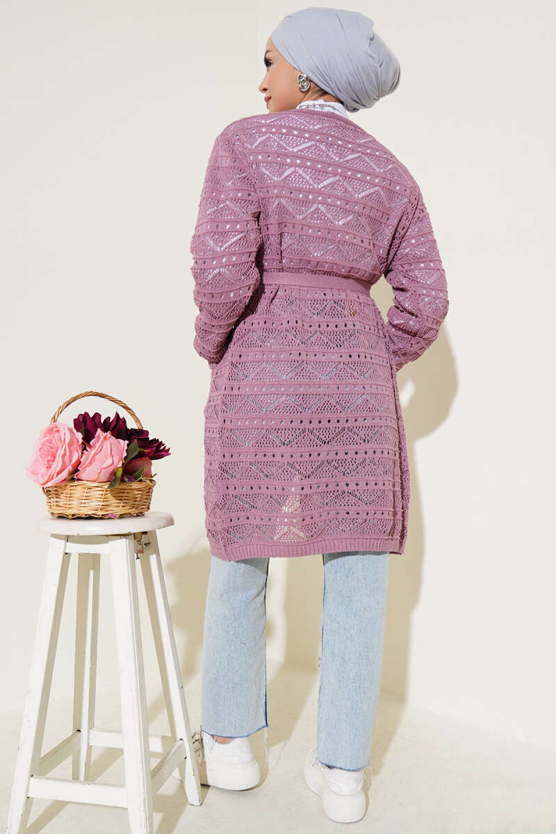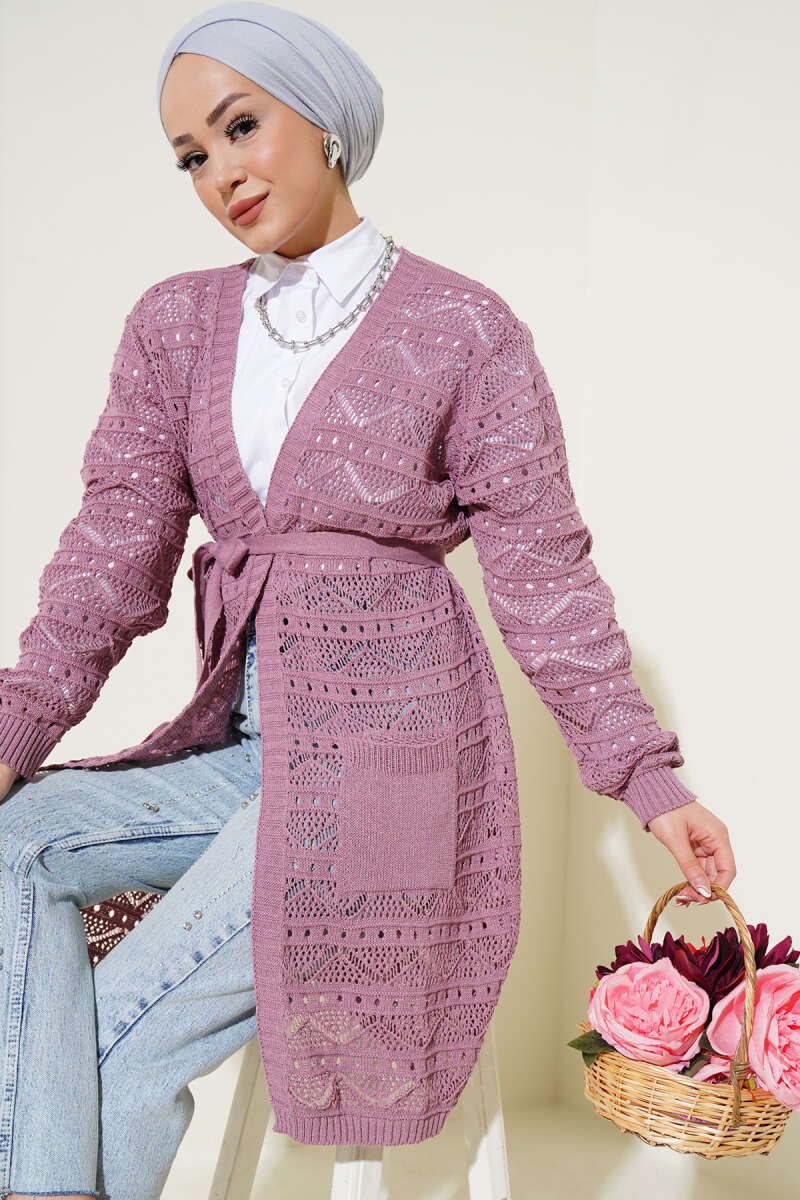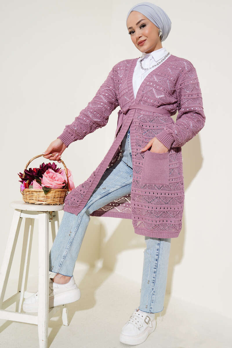 Pirinç Örgü Basic Triko Hırka Nar Çiçeği