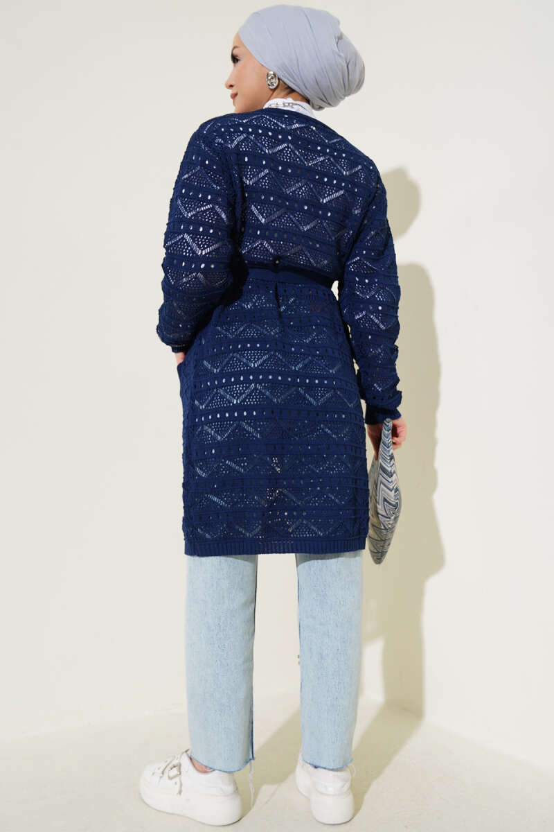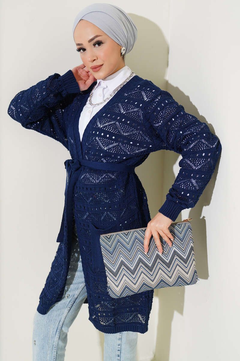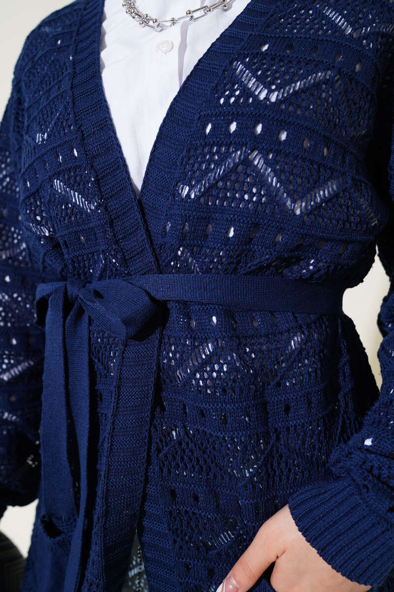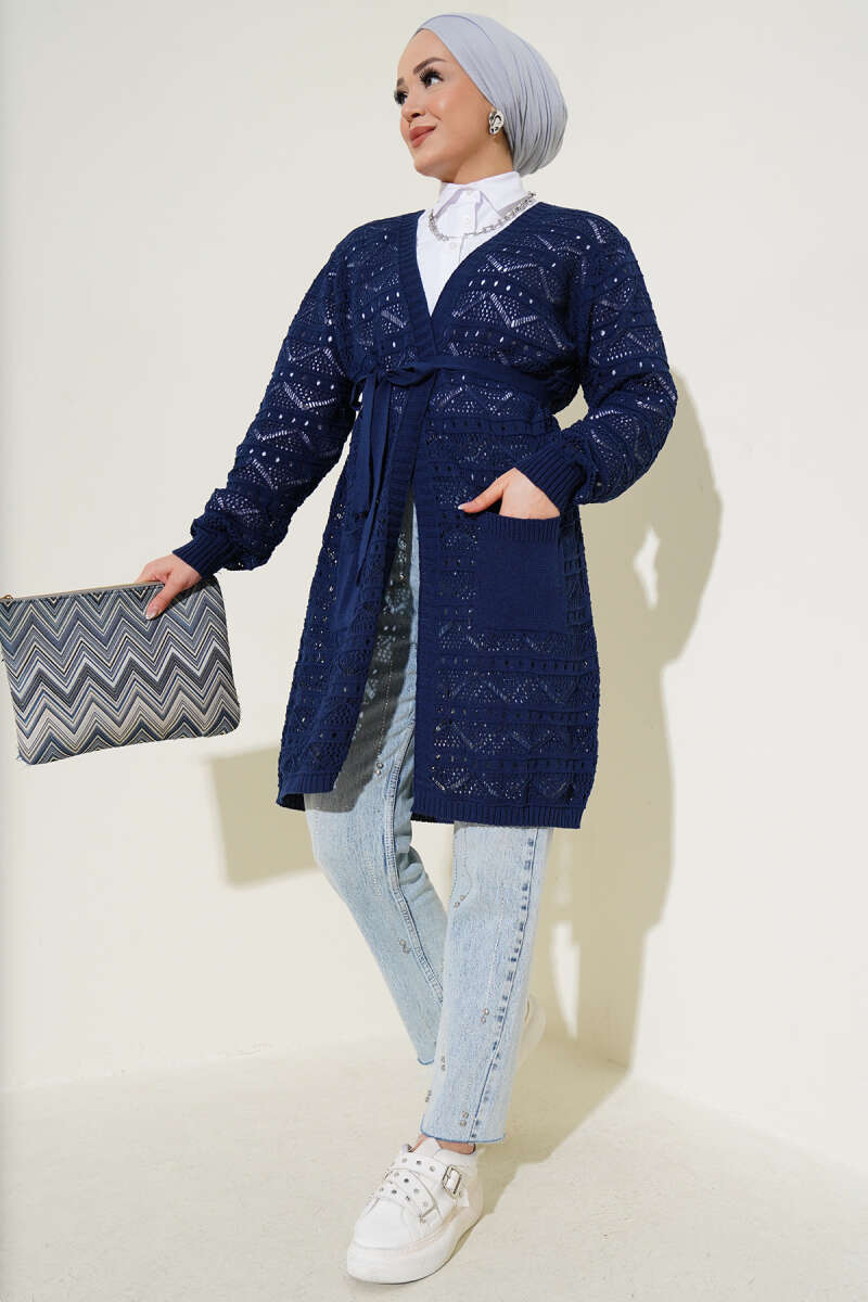 Çiçek Detaylı Yumoş Triko Tunik Lacivert