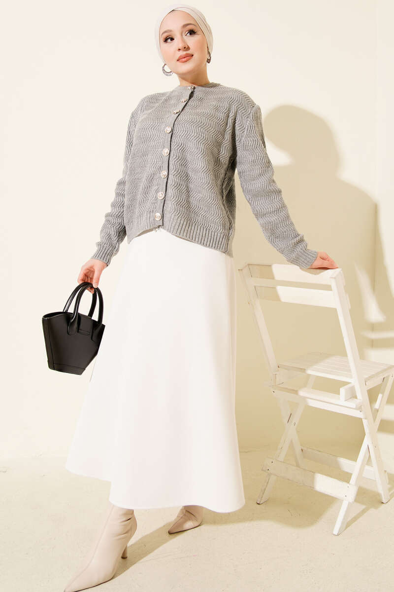 Zikzak Desenli Gold Düğmeli Triko Hırka Füme