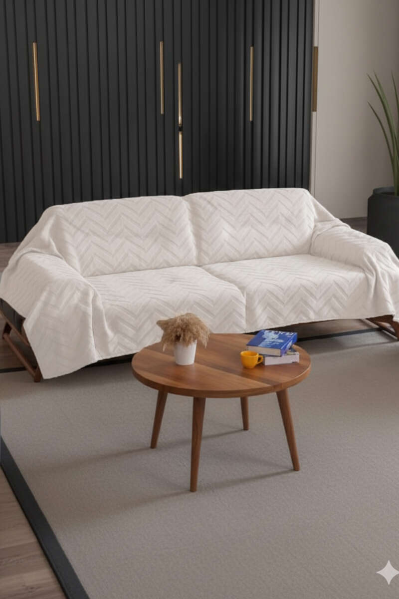 Zikzak Desenli Koltuk Örtüsü Ekru