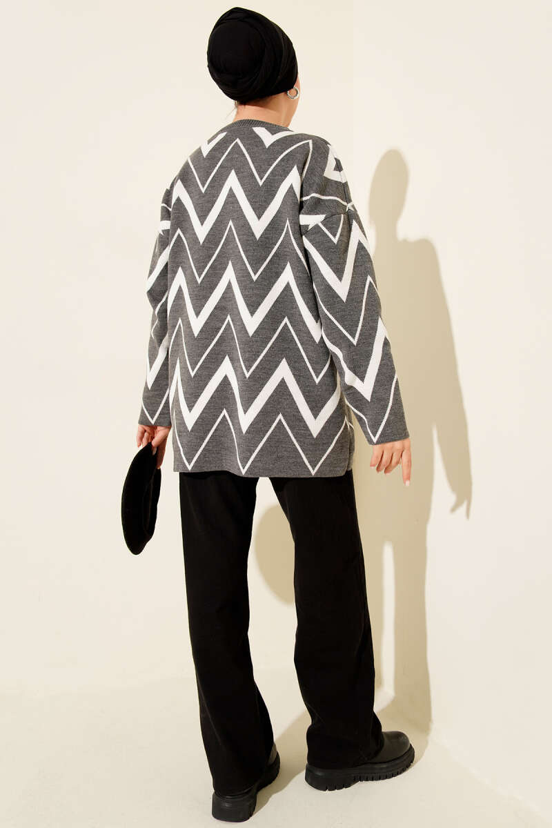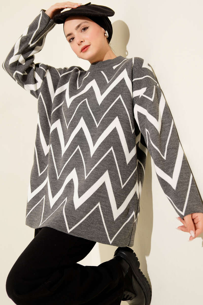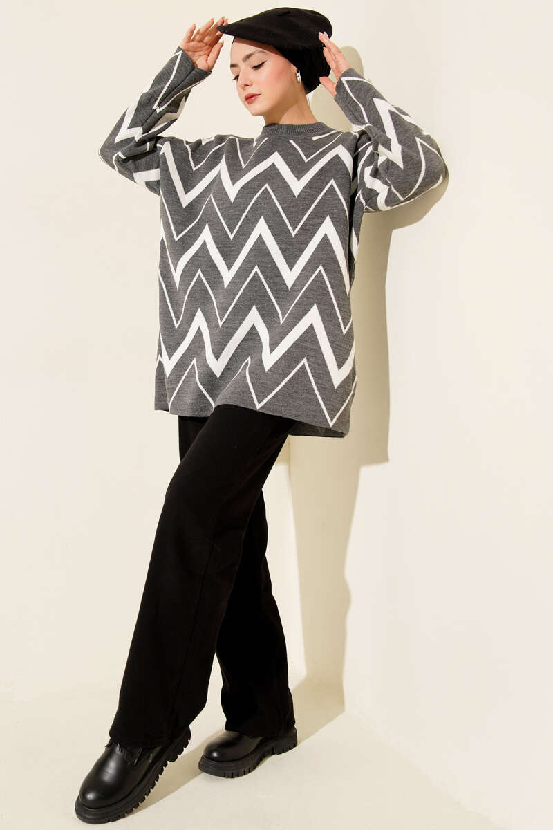 Zikzak Desenli Triko Tunik Füme