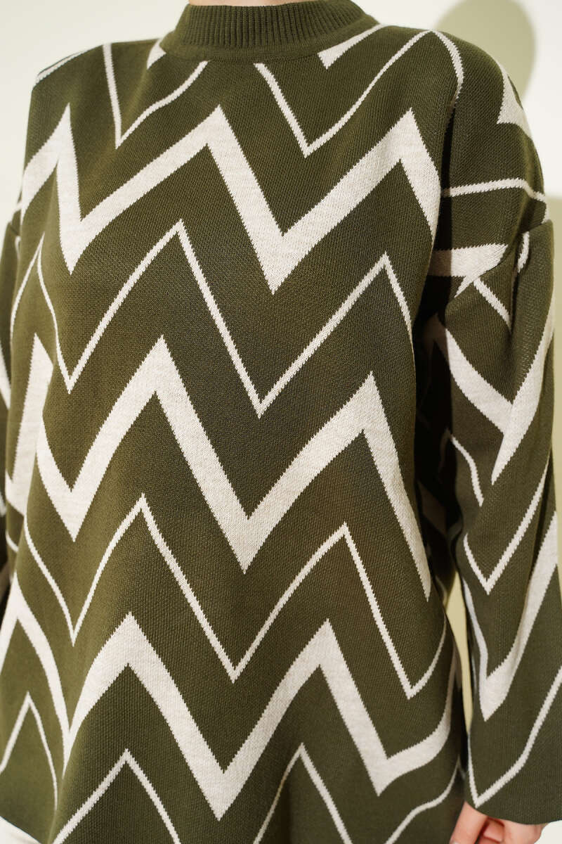 Zikzak Desenli Triko Tunik Yağ Yeşili