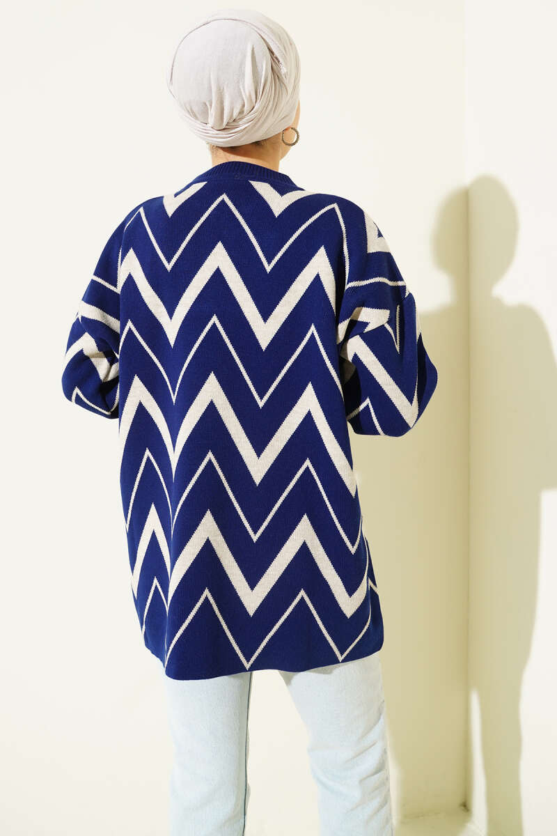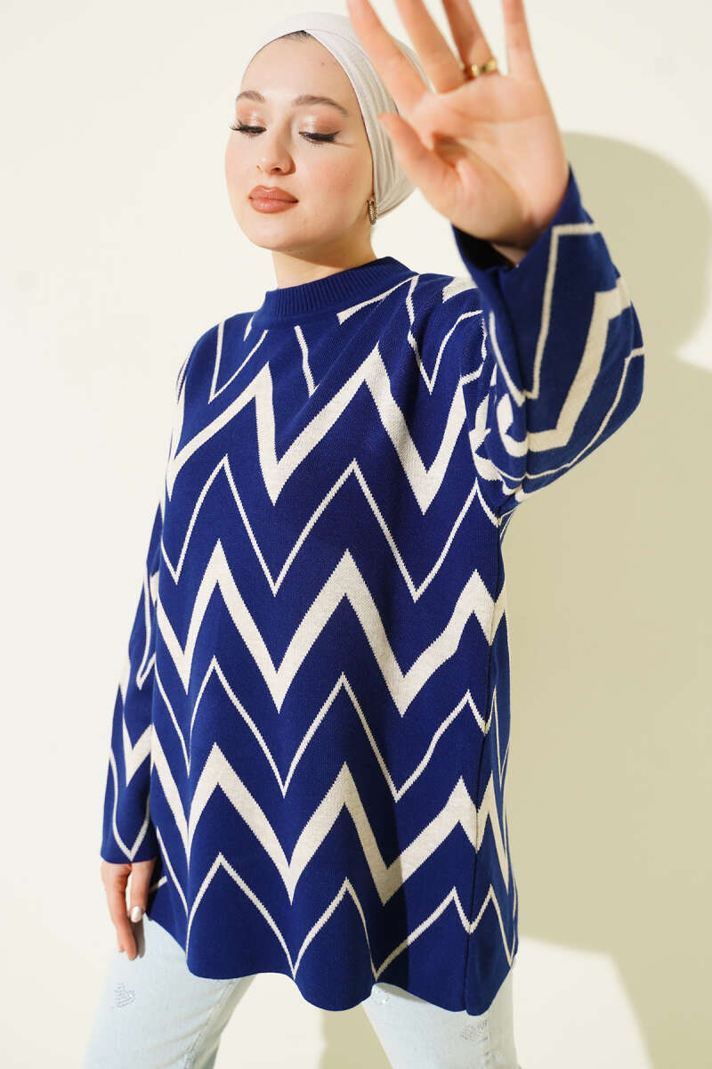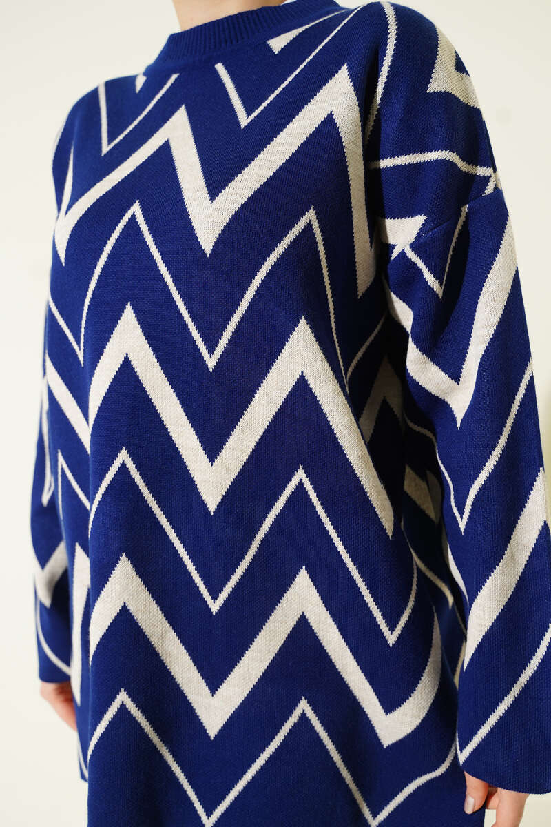 Zikzak Desenli Triko Tunik Yağ Yeşili