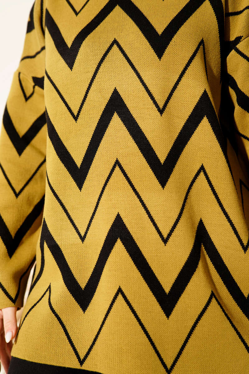 Geniş Fitilli Triko Yumoş Tunik Sarı
