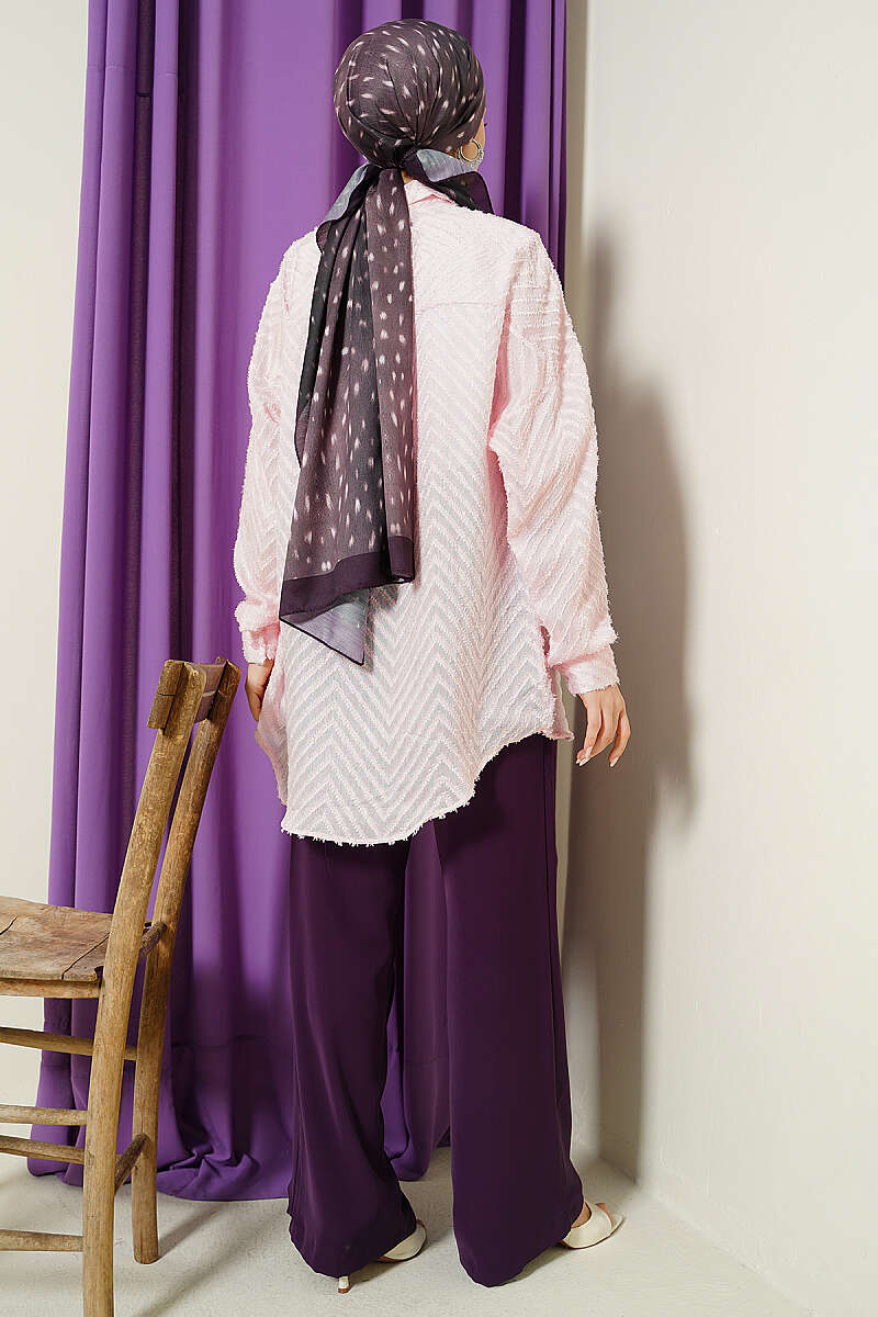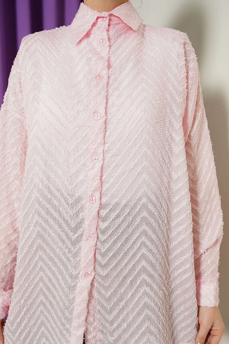 Zikzak Püsküllü Salaş Gömlek Pudra