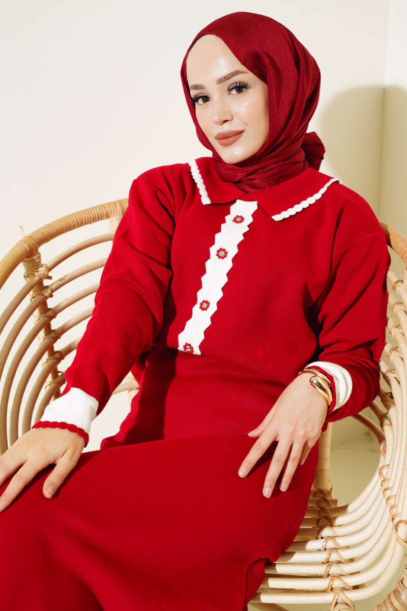 Bisiklet Yaka Fitilli Triko Elbise Taş