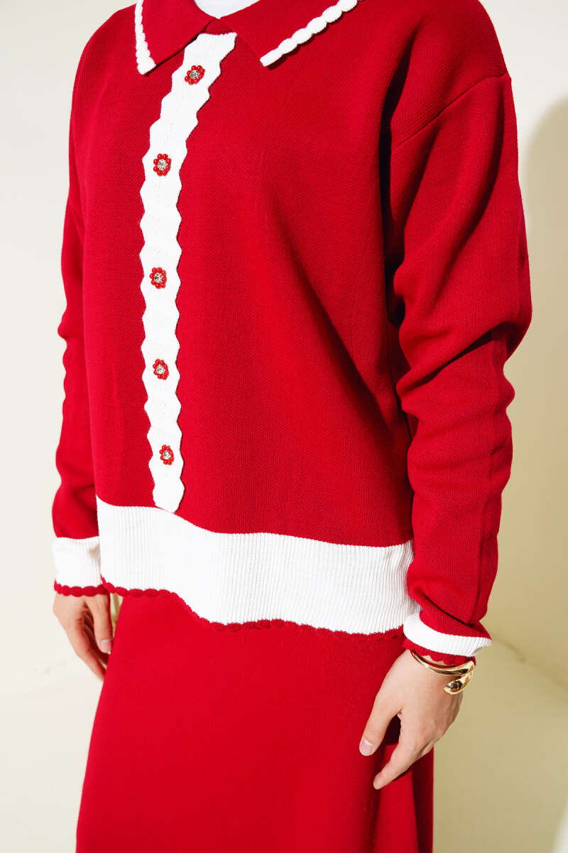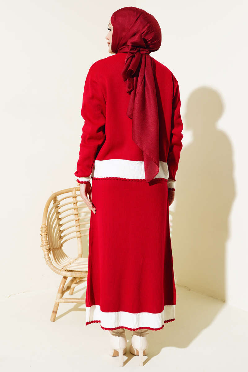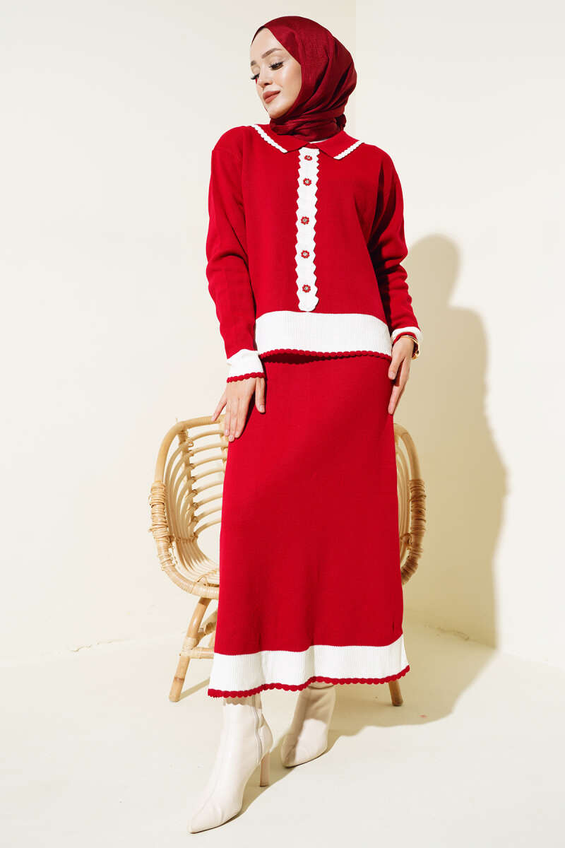 Balon Kol Balıkçı Yaka Triko İkili Takım Bordo