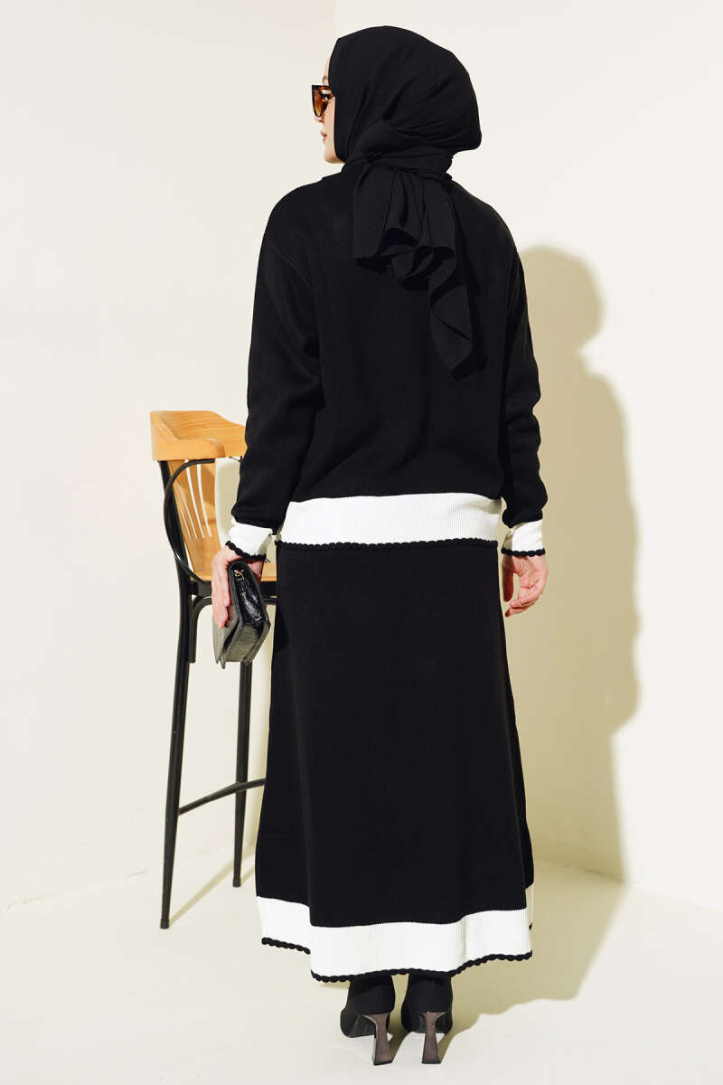 Dikiş Detaylı Basic Triko İkili Takım Siyah