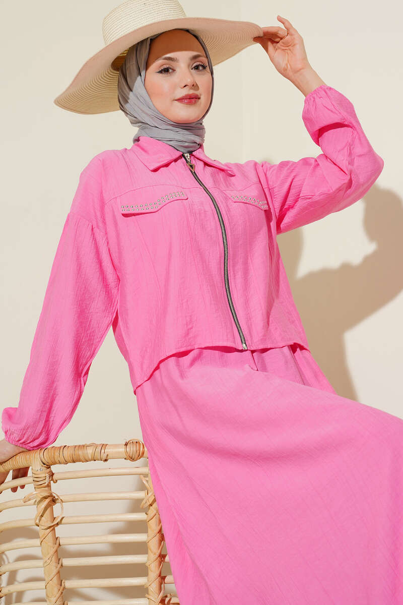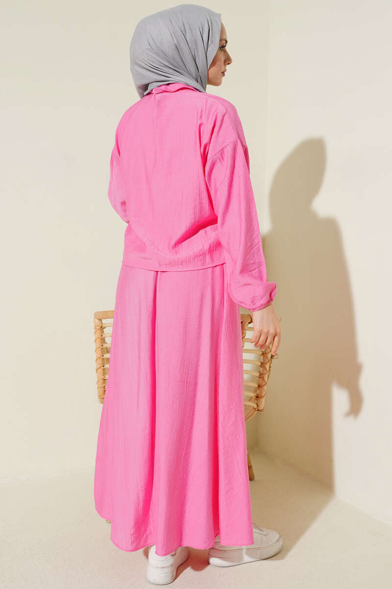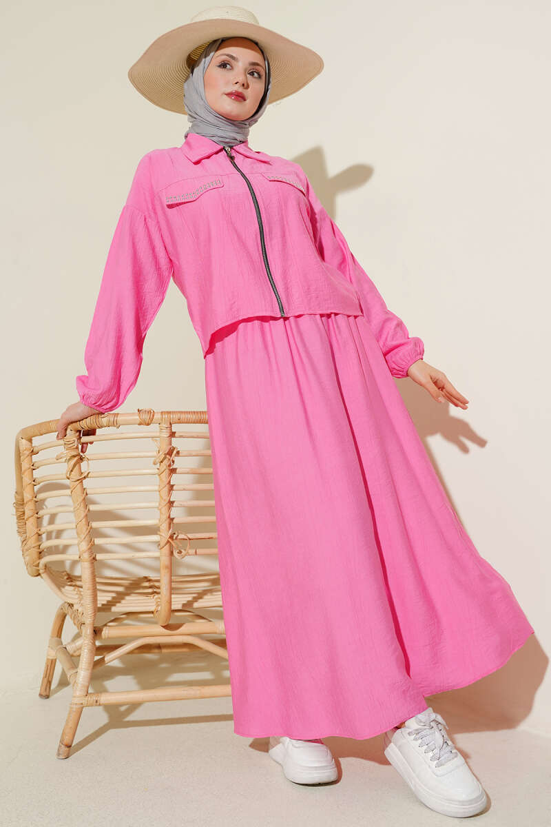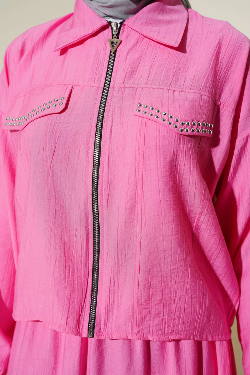 Zımba Cep Kapaklı Etekli İkili Takım Pembe