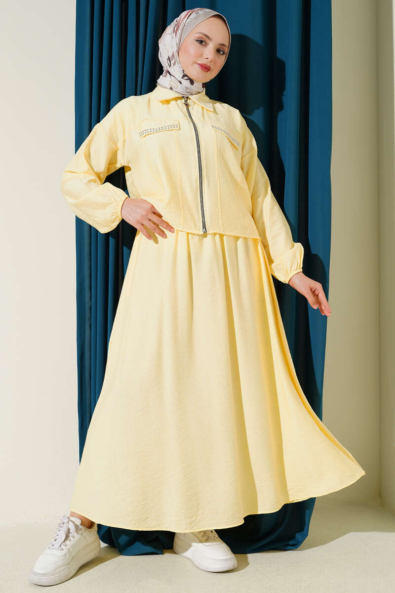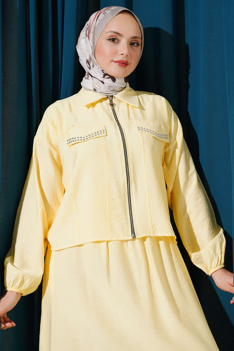 Zımba Cep Kapaklı Etekli İkili Takım Sarı