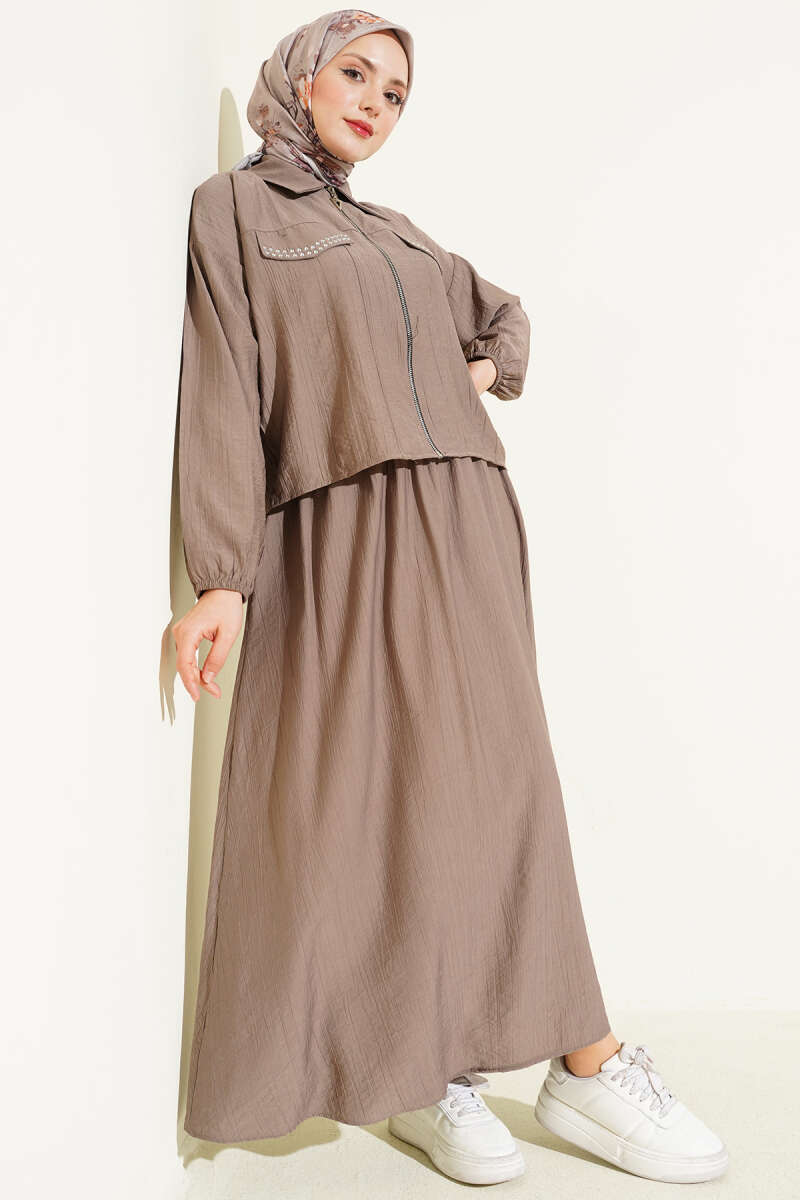 Zımba Cep Kapaklı Etekli İkili Takım Haki