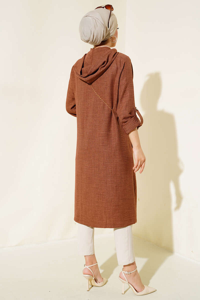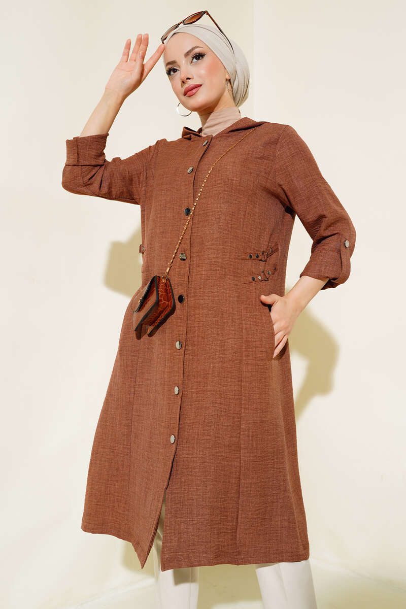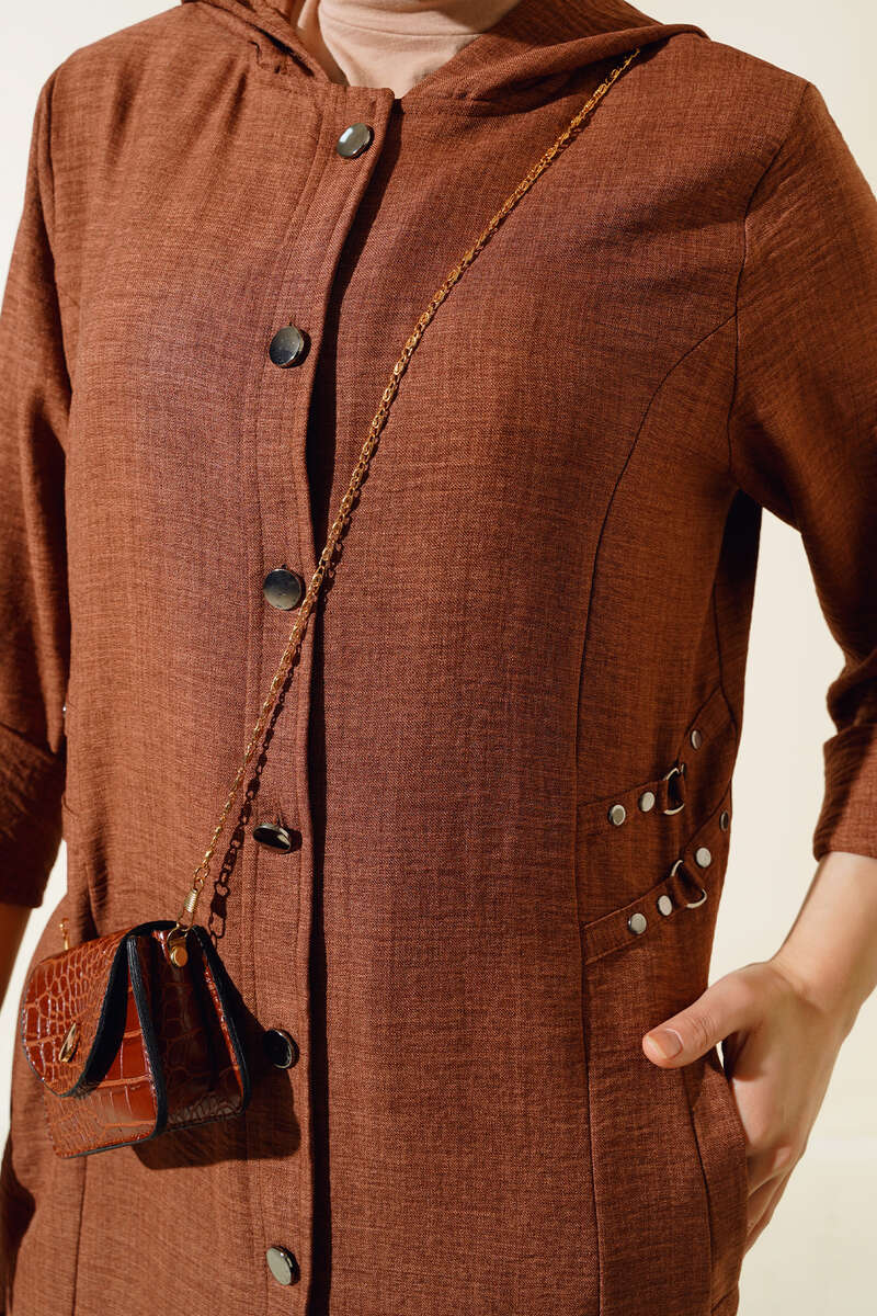 Zımba Detaylı Kapüşonlu Kap Taba