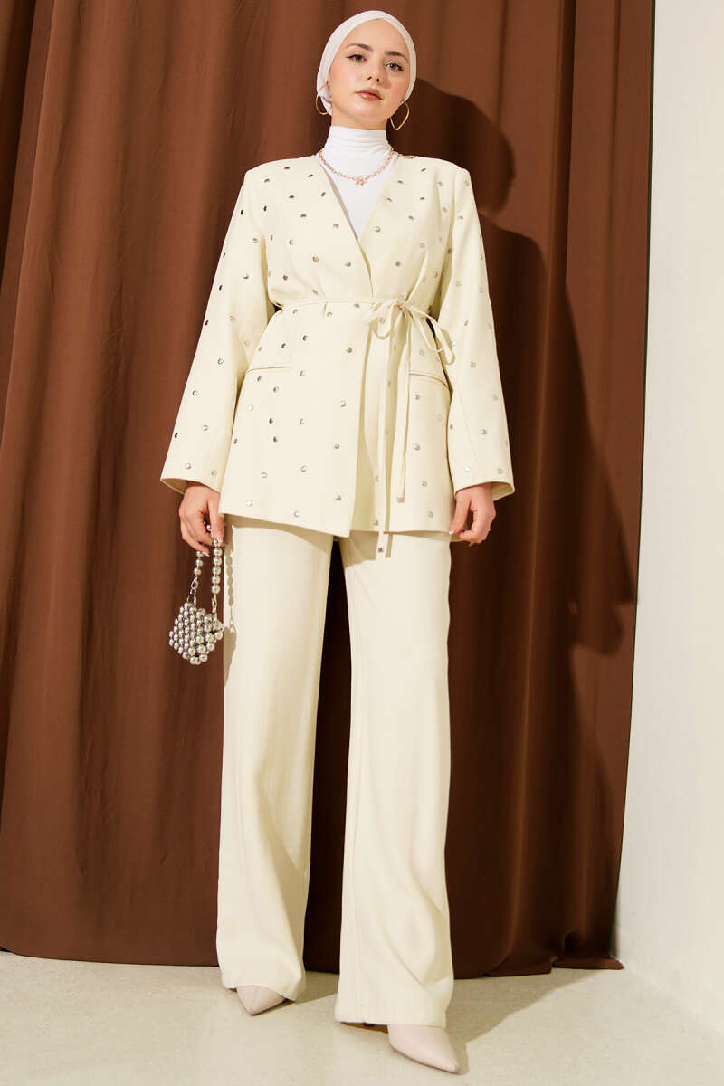 Zımbalı Ceketli Tencel İkili Takım Yağ Yeşili