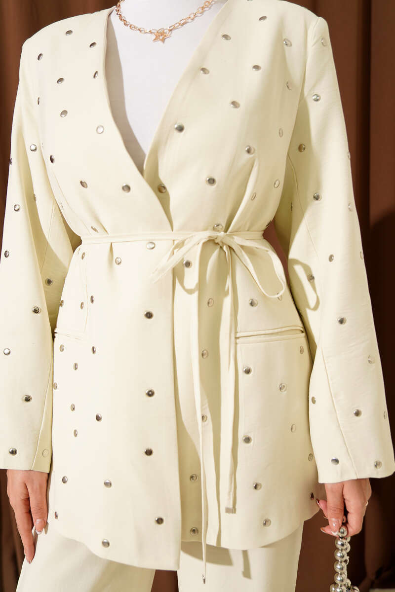 Zımbalı Ceketli Tencel İkili Takım Siyah
