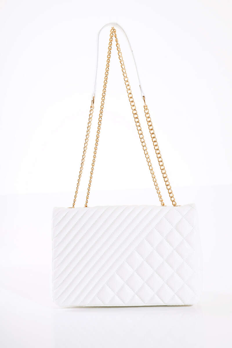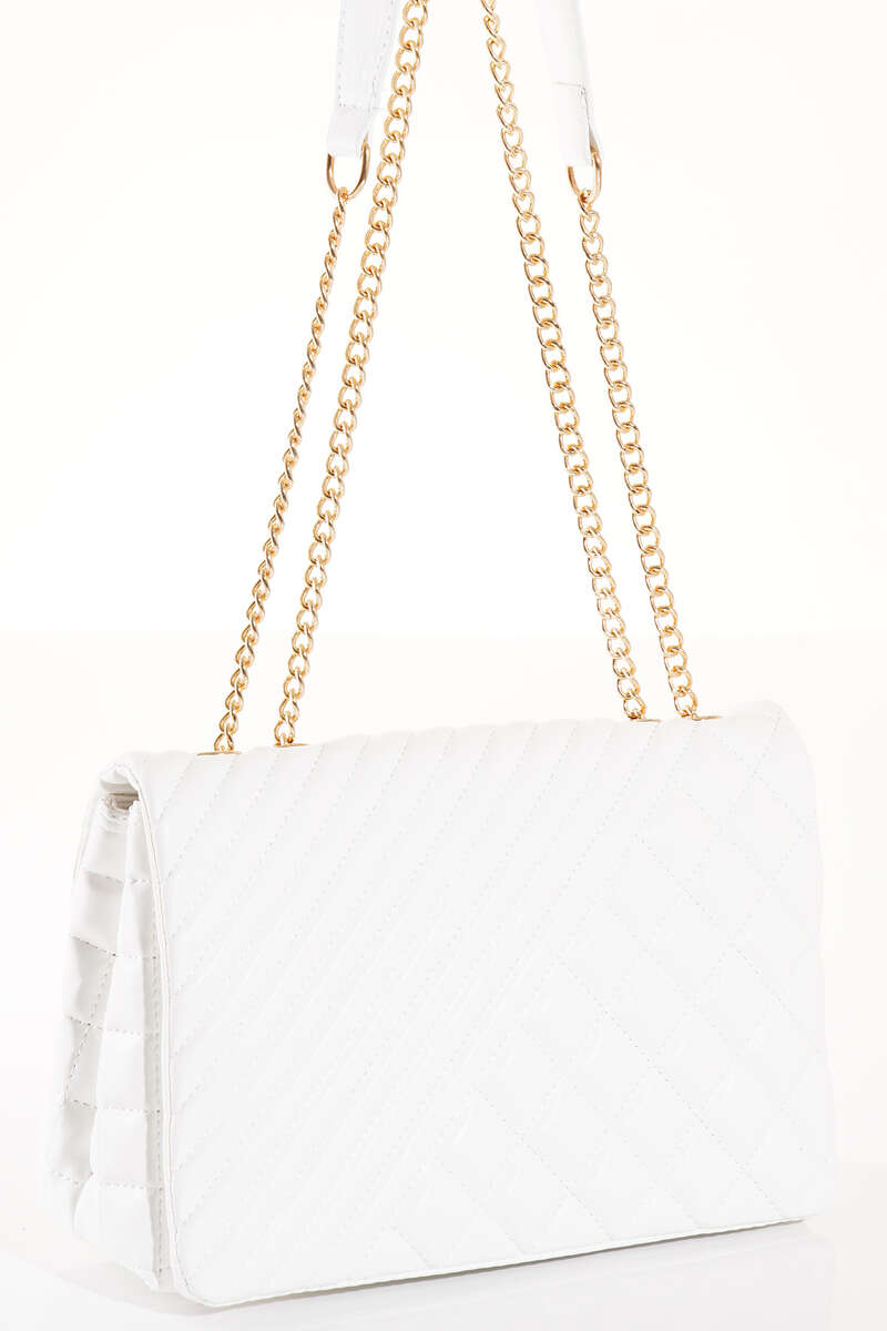 Fermuarlı Kilit Detaylı Kol Çanta Beyaz