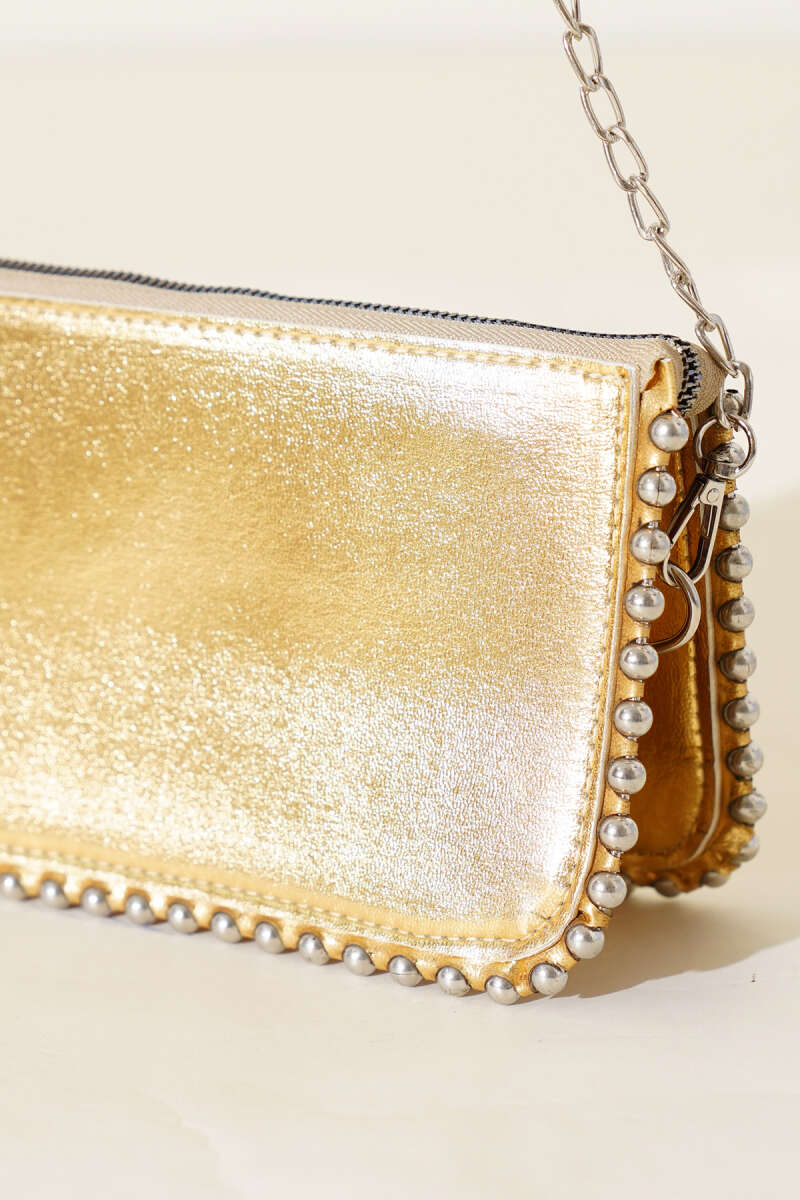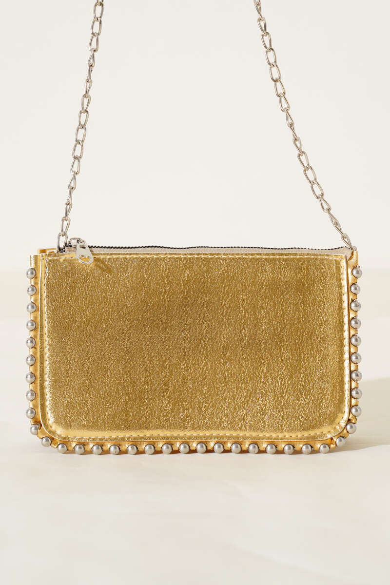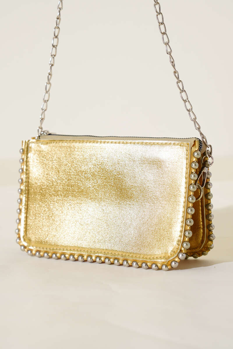 Zincir Askılı Zımbalı Çanta Sarı