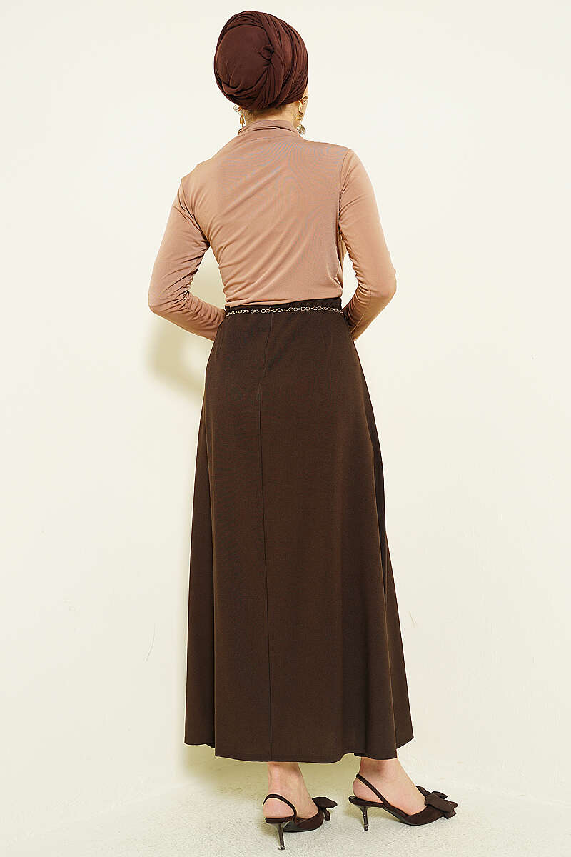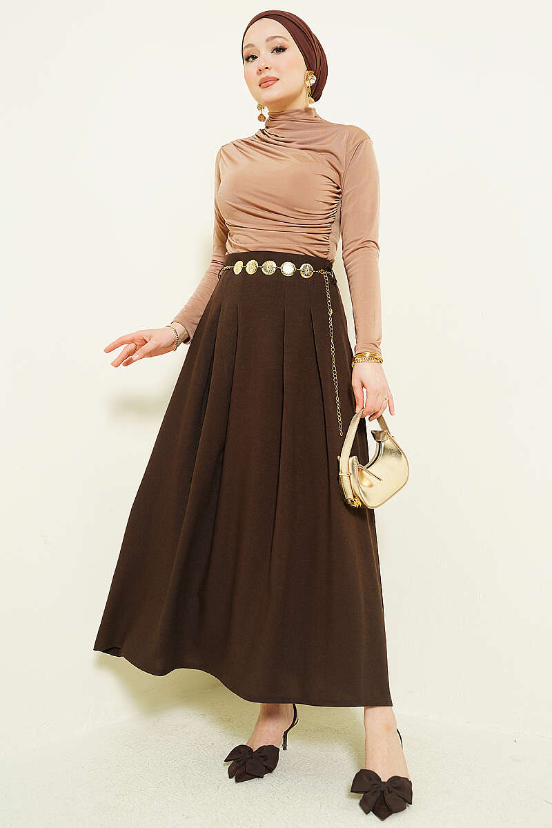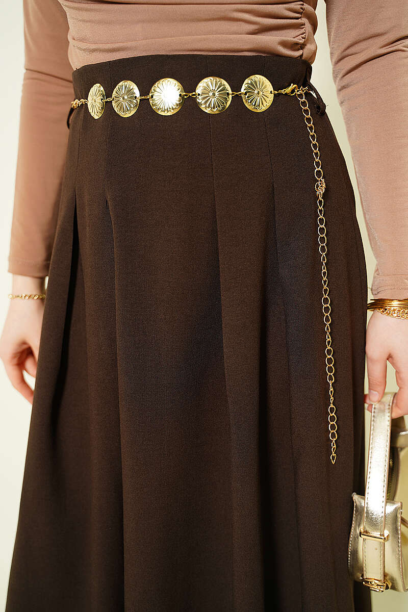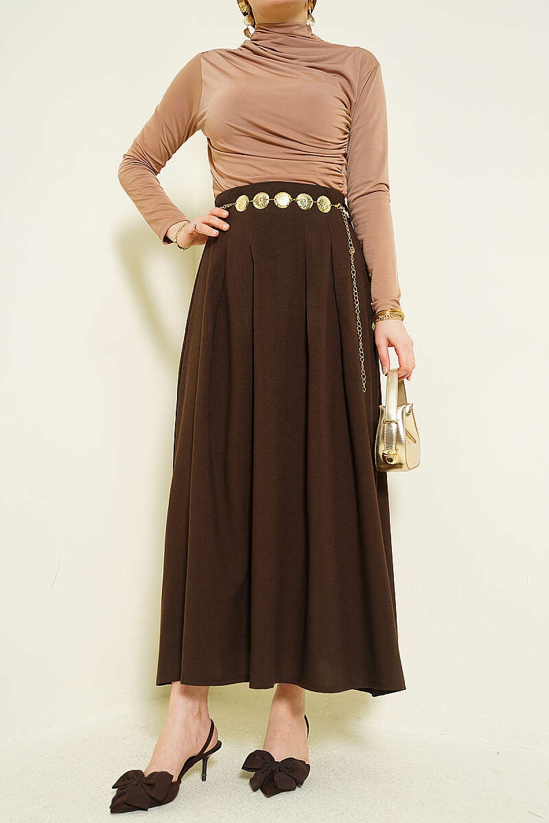 Zincir Kemerli Pileli Etek Kahve