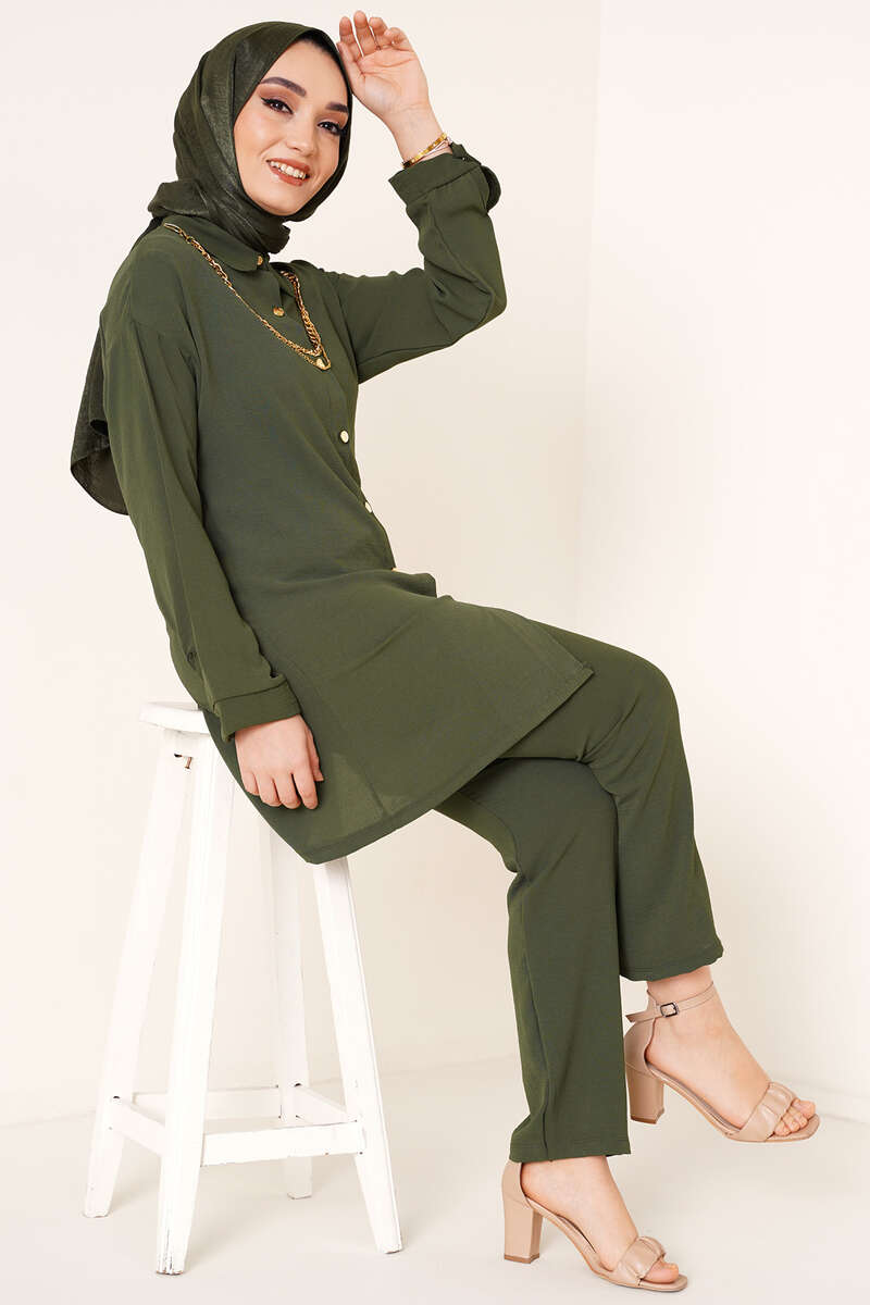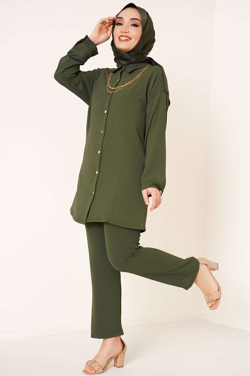 Zincir Kolyeli Ayrobin İkili Takım Haki