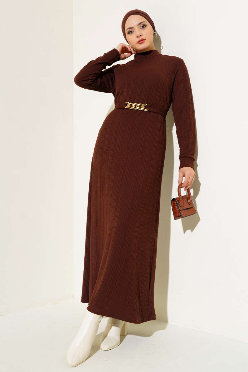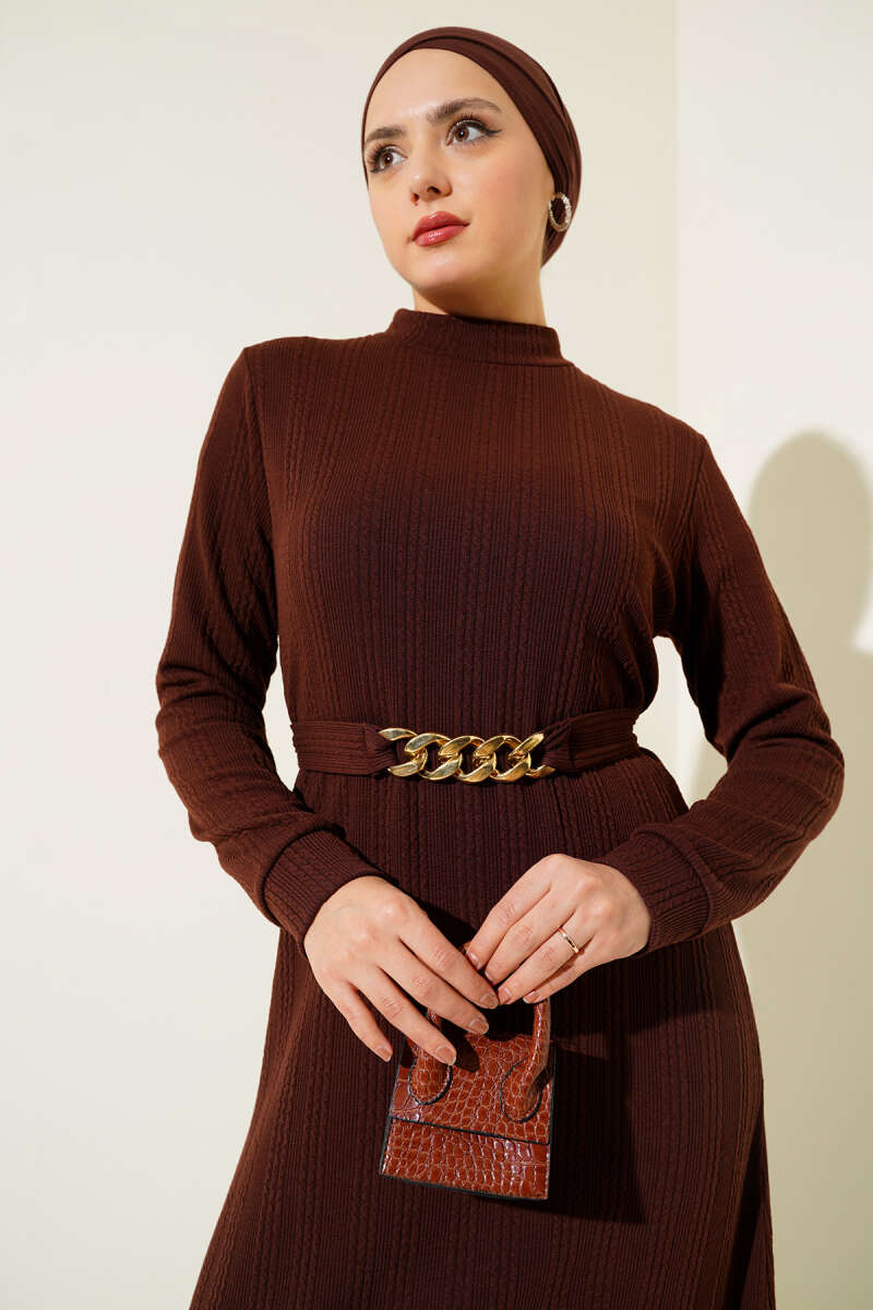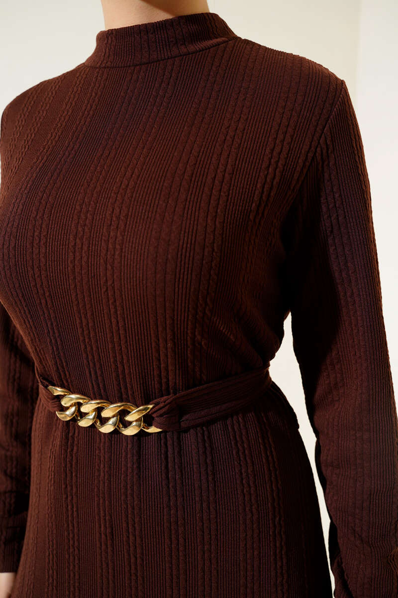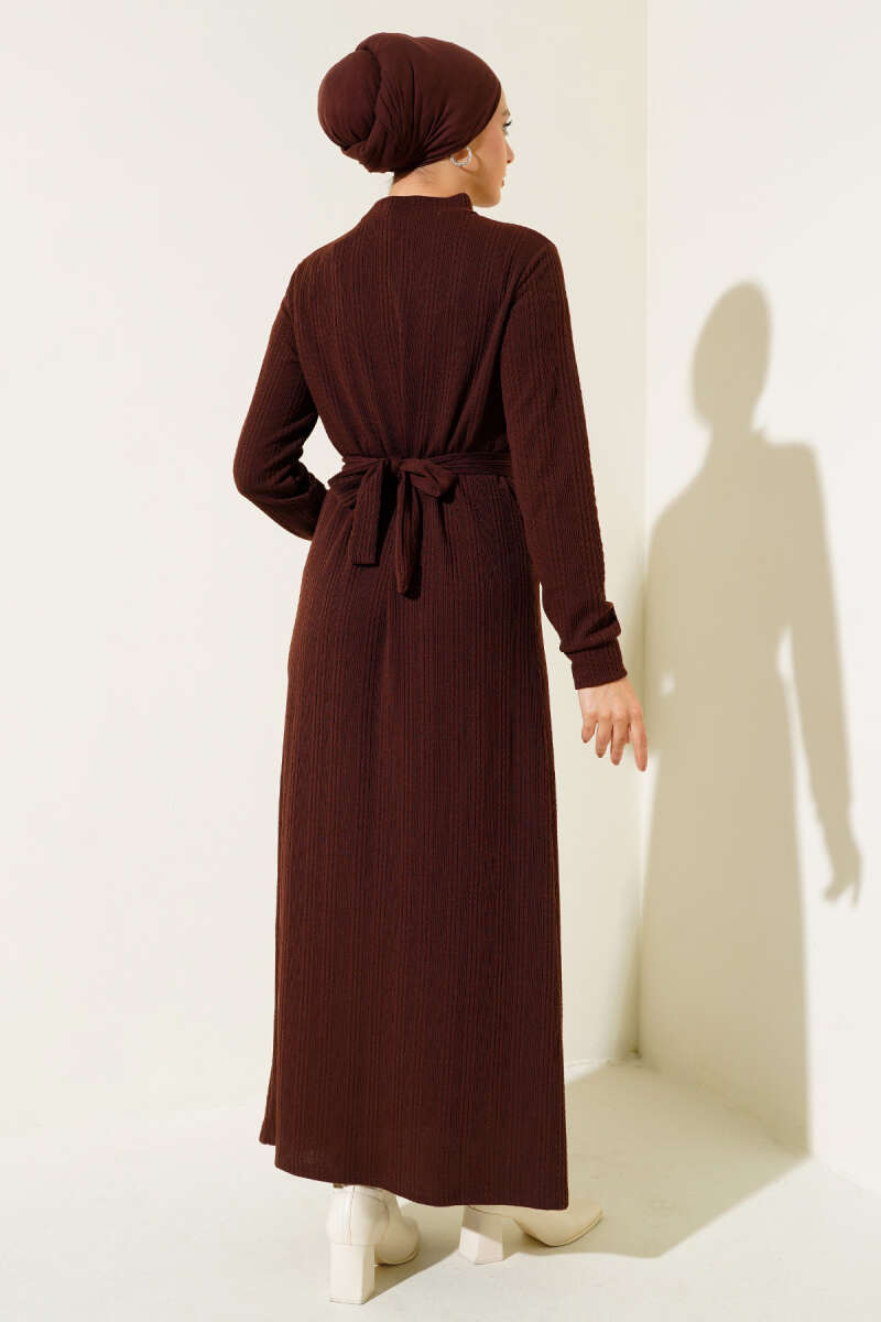 Gömlek Yaka Düğmeli Triko Elbise Kahve