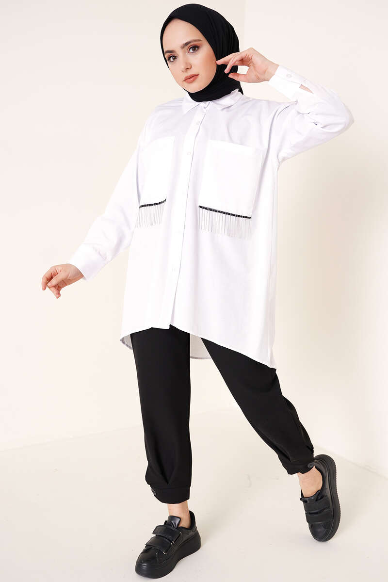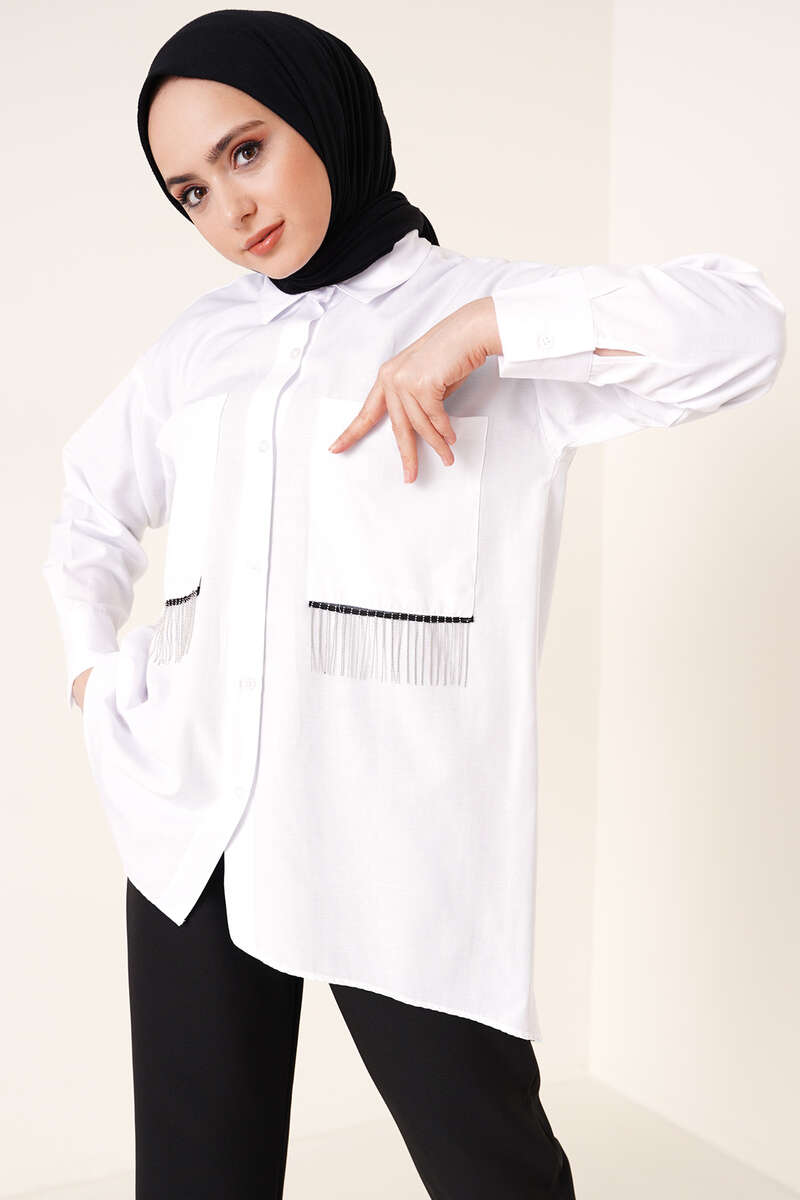 Yeni sezon gömleğimiz harika tasarımıyla sizler için geldi. Gömleğimizde iki adet göğüs cebi bulunmaktadır. Cep altlarında zincir püskülleri vardır. Arkası uzundur. Oldukça rahat yapıdadır. Her kıyafetinizle rahatlıkla kombin yapabilirsiniz. Farklı renk seçenekleri mevcuttur.