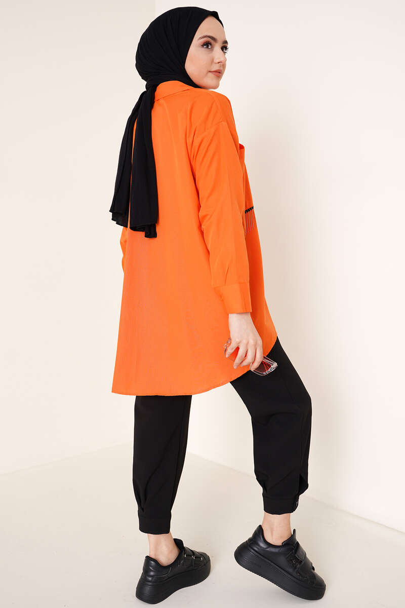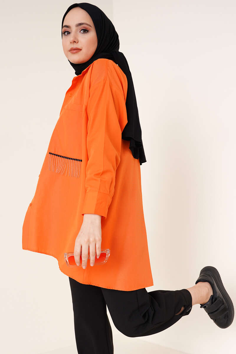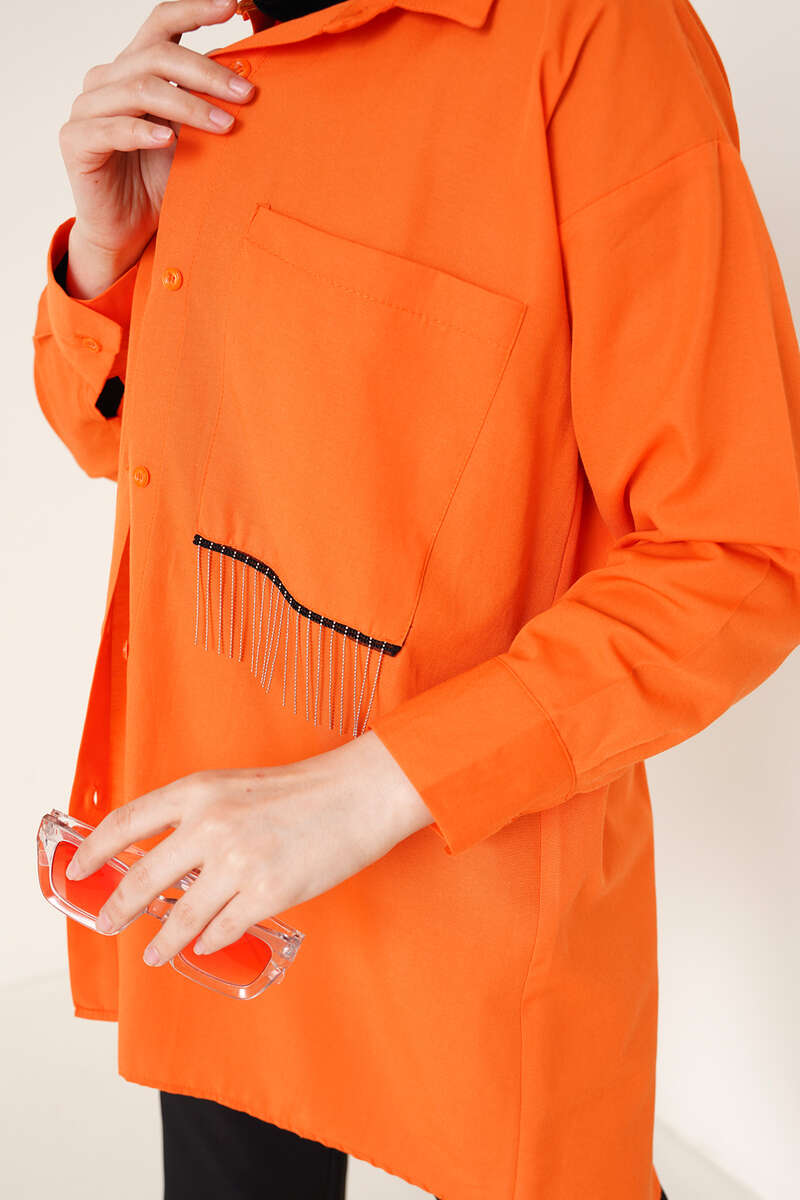 Yeni sezon gömleğimiz harika tasarımıyla sizler için geldi. Gömleğimizde iki adet göğüs cebi bulunmaktadır. Cep altlarında zincir püskülleri vardır. Arkası uzundur. Oldukça rahat yapıdadır. Her kıyafetinizle rahatlıkla kombin yapabilirsiniz. Farklı renk seçenekleri mevcuttur.