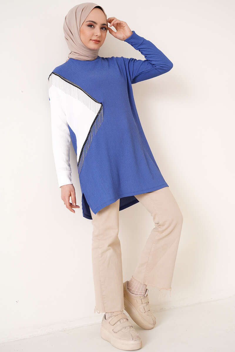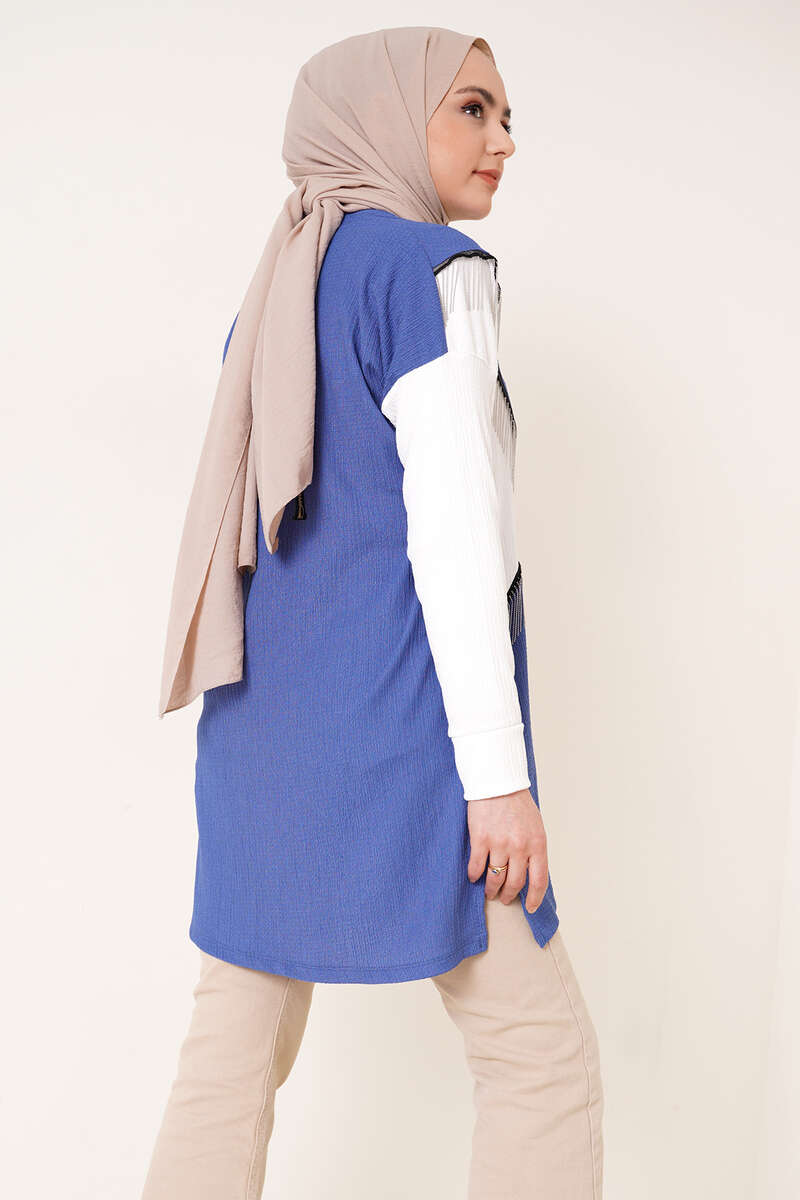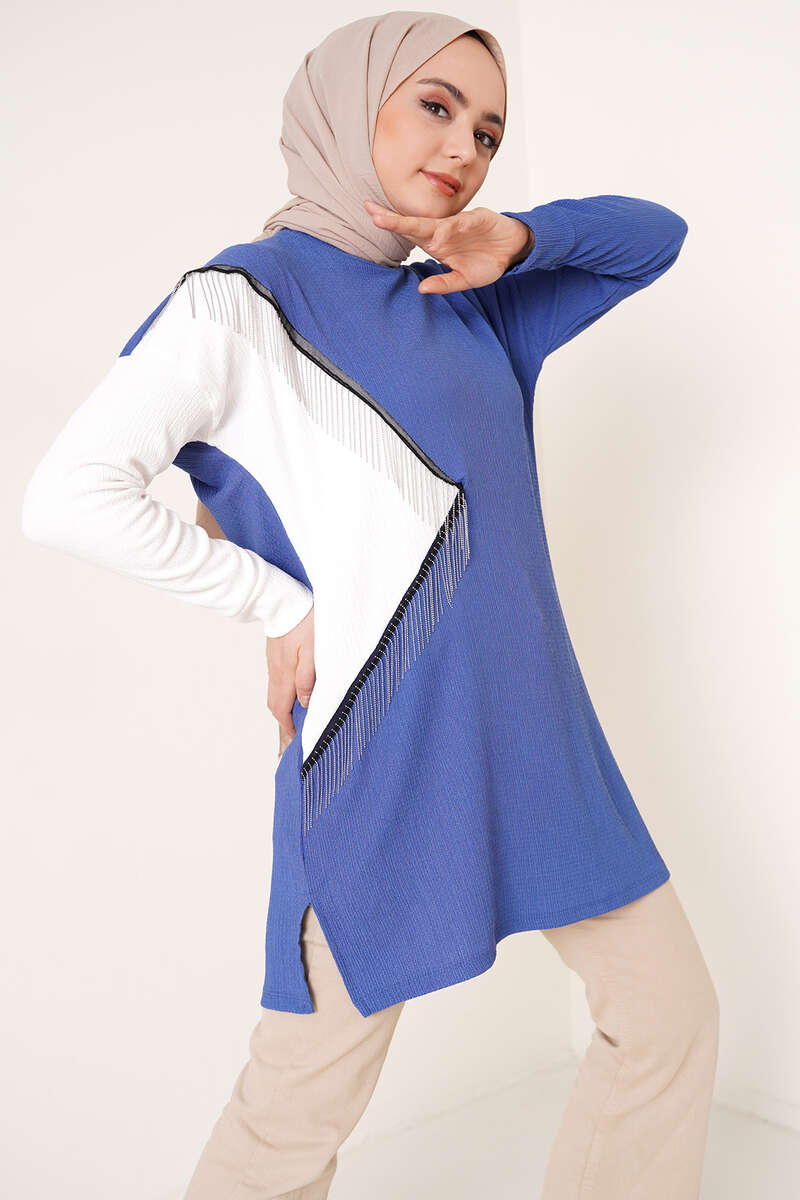 Zincir Püsküllü Bürümcük Tunik İndigo