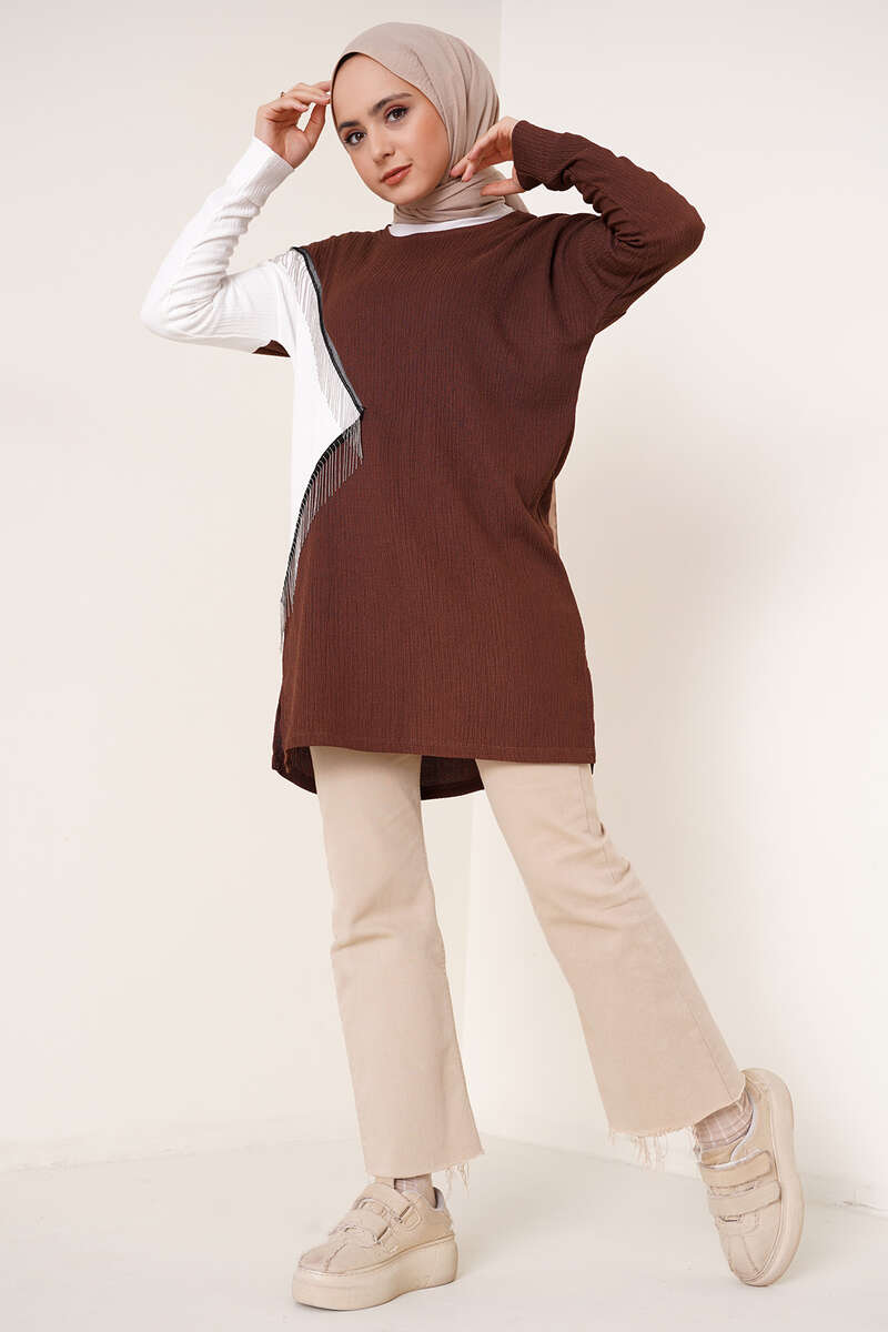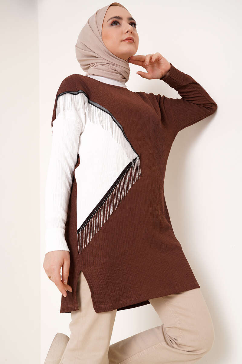 Zincir Püsküllü Bürümcük Tunik Kahve