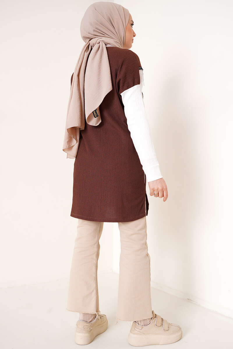 Bilek İpli Fitilli Kaşe Tunik Kahve
