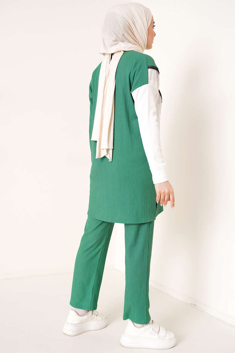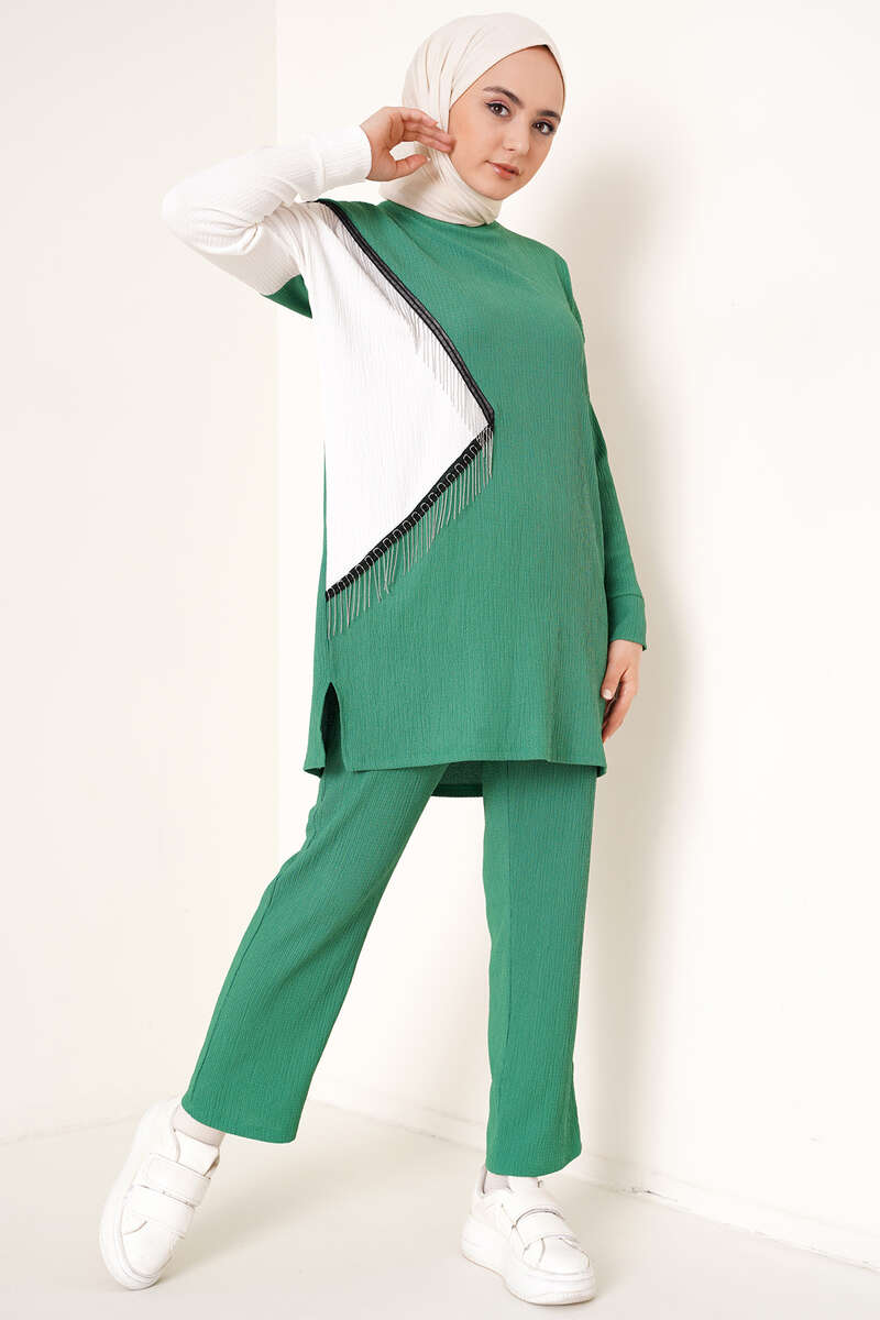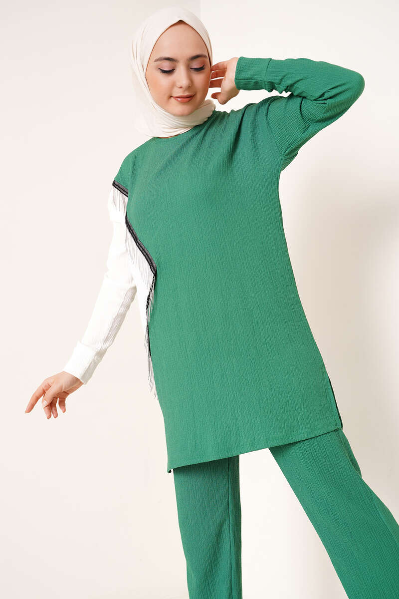 Zincir Püsküllü Garnili Bürümcük İkili Takım Yeşil