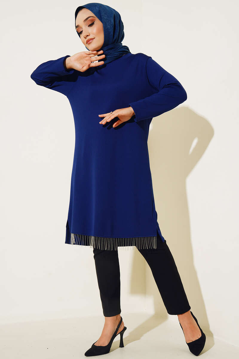 Yeni sezon tuniğimiz harika tasarımıyla sizler için geldi. Tuniğimizin zincir püskülleri bulunmaktadır. Tuniğimiz uzun yapıdadır. Alt kısmında yırtmacı bulunan tuniğimiz bu yaz kombinlerinizin vazgeçilmezi olacak.