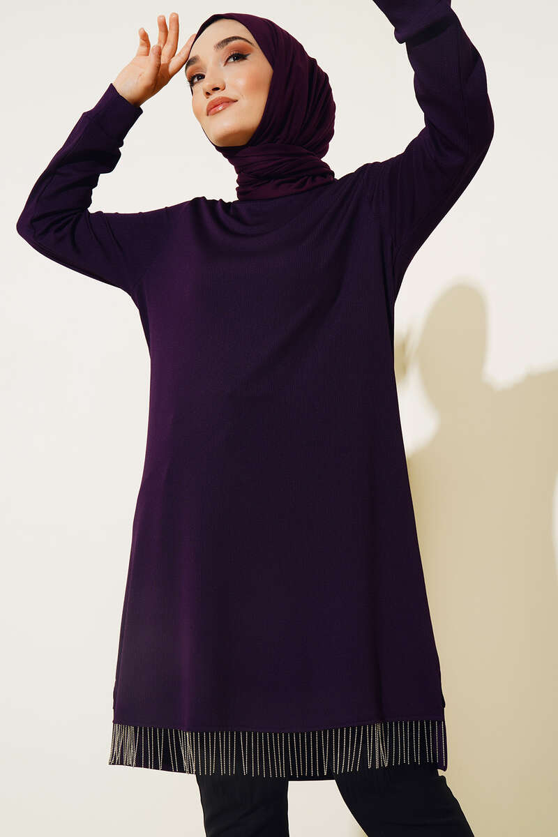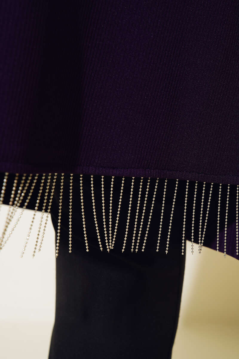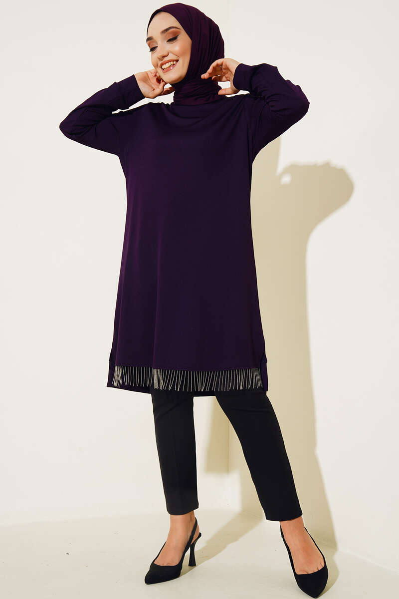Zincir Püsküllü Uzun Tunik Mor