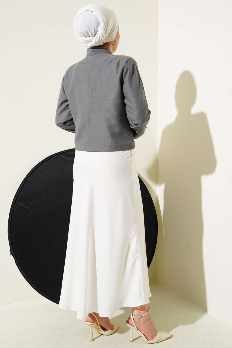 Zincirli Çengel İğneli Kısa Ceket Gri